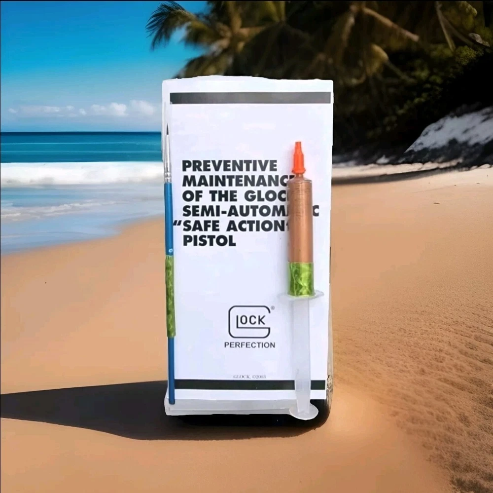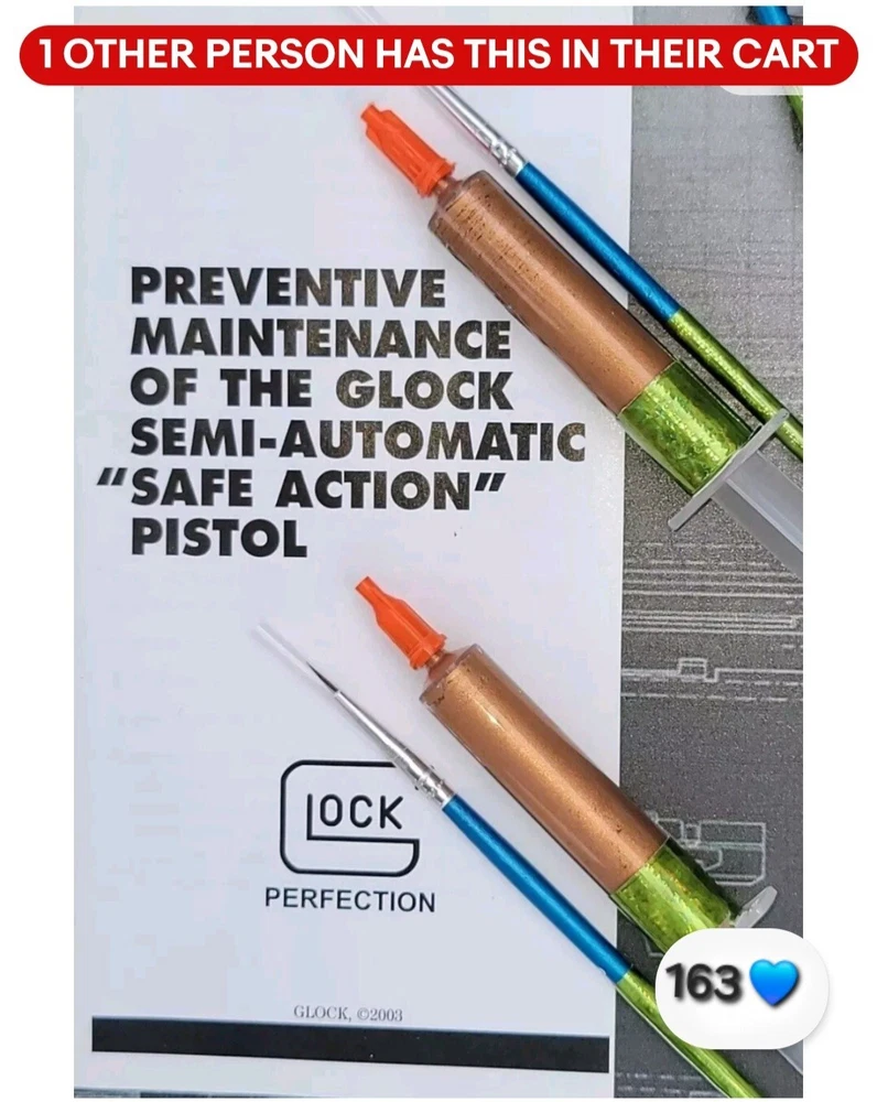 5cc 5ML SIZE The perfect gift for the one who has everything GLOCK. Sure will be a surprise! "The copper colored lubricant found on portions of the slide and trigger connector should not be removed...After cleaning...Apply the copper colored lubricant to portions of the frame, slide and trigger connector..."-Glock Inc 2003 Enhance the performance of your GLOCK pistol with this high-performance lubricant. The Bronze Oilite brand offers a saltwaterproof and heavy-duty lubricant that is perfect for all caliber GLOCK pistols. The 5.0ml unit comes with a syringe for easy application. This lubricant is designed to ensure smooth operation and prevent wear and tear on your GLOCK pistol. It is made of high-quality bronze copper material and contains a copper-colored lubricant that is perfect for enhancing the aesthetic appeal of your pistol. The item weighs only 5.0ml and is manufactured in the United States. Get your hands on this premium quality lubricant and take the first step towards maintaining the optimal performance of your GLOCK pistol. GLOCK The spirit of the age is to make you forget. To forget the genius of Gaston Glock. To not remember the copper colored lubricant found on portions on the inside of new glock pistols. To not remember the instructions of "Should Not Be Removed " To not remember the Glock endurance test of one million rounds fired from a single pistol. COPPER COLORED LUBRICANT The same anti-friction, anti-seize, high temperature, water resistant, no run, copper grease found in a brand new Glock off the assembly line. When you buy a new Glock, you are NOT supposed to clean off the Bronze Oilite copper grease. You are supposed to let it protect against wear and friction over time by itself. This special Bronze Oilite grease serves two important purposes. First, it works as an anti-friction agent as you break in your gun. Bronze Copper is a much softer metal than steel and the polarized petroleum distillate grease is a lot thicker than basic gun grease, these two factors give more protection than standard gun grease for parts with steel on steel contact that take lots of abuse. The second reason Glock applies this is because when they make a new gun, there is no way to know how long it may sit on the shelf before it is sold. This Bronze Oilite anti-seize is ideal for long-term storage. Will not run like typical gun grease or gun oil. This anti-corrosion grease can also be used in place of regular gun grease to protect your springs and magazine spring to keep moisture from rusting them up. Bronze Oilite lubrication can also be used in other firearms as well. Just a dab of this at a time because a little of this copper colored lubricant goes a long way. Place a small drop on the rails and some other metal on metal contact areas or anywhere else you would use traditional gun grease. The spirit of the age is to forget the Glock endurance test of 1 million rounds fired from a single Glock 17 with only this proven superior copper colored lubricant inside. Without breaking a single part and only replacing worn magazines. Unmatched performance from a single pistol, with credit going to the copper colored lubrication that no other wet oil or gun grease can provide. ◇ Glock endurance tested 1 million rounds fired from a single pistol* Anti-friction...IMPORTANT INSTRUCTIONS: DO NOT DILUTE. The Bronze Oilite ball bearings are designed to attach to the pores of the steel and rotate freely in the Polarized petroleum distillates. ◇*08-02-2010 | 12:44 PM SJgunguy24 *The old National Shooting Club in Santa Clara had a G 17 that had 1,000,000 rounds. The Glock factory purchased back that pistol for testing. My 17 is close to 50K