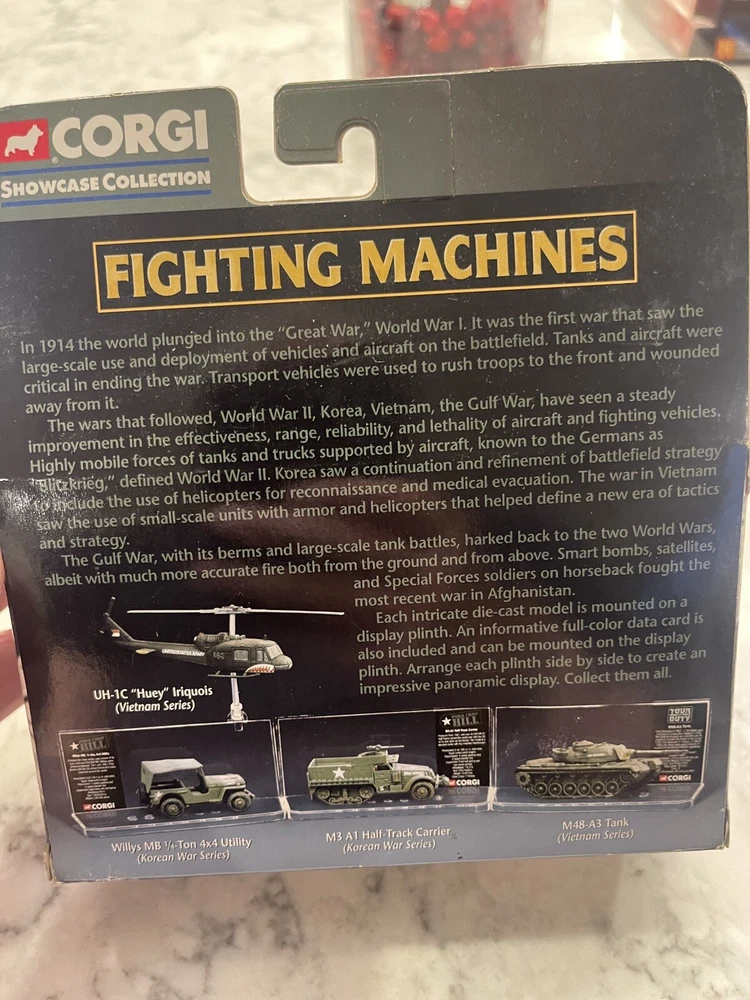 Country/Region of Manufacture: China gtin13: 807903002243 Age Level: 8-11 Years, 17 Years & Up Brand: Corgi Vehicle Make: M48 MPN: CS90393 Type: Tank Color: Green Scale: 1:72 Series: CORGI CLASSICS LIMITED Recommended Age Range: 11+ Model: CORGI Fighting Machines Vehicle Year: 2005 Material: die cast Theme: Military Features: Unopened Box UPC: 807903002243