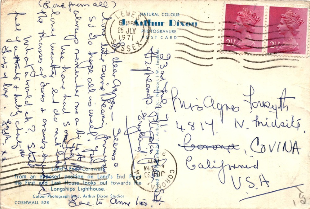 MAKE AN OFFER. THE MORE YOU BUY THE BETTER DEAL I WILL ACCEPT The postcard features a colorful photograph by J. Arthur Dixon Studios of Land's End in Cornwall, England. Land's End is a headland on the western tip of Cornwall, known for its rugged beauty and stunning views of the Atlantic Ocean. The First and Last House, depicted in the image, is a historic building that marks the westernmost point of mainland England.