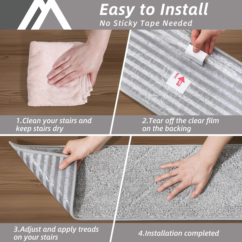 COSY HOMEER Edging Stair Treads Non-Slip 28 x 9 inches (4 pieces), Grey Product Features NON-SLIP STAIR RUG: Multi-purpose Stair mats to use the TPE Non-Skid backing on dry floor, helping it to stay in place on your floor, it won't slip or scuff floors. Low profile design so doors won't get stuck.Perfect for homes with pets (dogs or cats) or kids. HOW TO USED Stair Treads for Step - Just clean, peel, and stick! If you need to reposition or remove,it won't leave any residue,always keeping your floors intact.And it won't remove or slip when meeting water. STAIR TREADS MAT SIZE:28"x9"x0.4",material:made of 100% polyester STAIR MAT NO -SLIP: Non Slip Strips can be washed repeatedly 30 times without affecting the slip resistance. Fit for restaurants,family rooms, corridors,game rooms and children's bedrooms CUSTOMER SERVICE: Our brand is always pursuing customer satisfaction as the top of priority. We are glad to receive more suggestions from our customers, if the mats have problems, we will process any request from customer with 24 hours, and replacement will be paid by us for any quality issues Shipping: Shipping is complimentary within the lower 48 US States. We Do Not Ship to PO/APO Boxes, HI or Alaska We Do Not Ship Outside of the Continental US All items ship within 24-72 hours of Payment For large items that require Freight shipping a valid phone number is required to call and schedule your delivery Terms of Sale and Feedback: Feedback is extremely important to us and eBay If you are satisfied with our transaction, please take a moment to leave Positive Feedback. YOUR Satisfaction is our #1 Priority! If there are any issues, PLEASE contact us BEFORE leaving a neutral or negative rating so that we may resolve any concerns. We PROMISE we can make you happy if you give us a fair chance. Returns / Concerns: All items qualify for returns within 14 - 30 days of receipt. Buyer is responsible for return shipping on any item that is not damaged Please be sure this is an item you want before making your purchase. Customer Satisfaction is our TOP priority! All items are IN STOCK at time of listing. Inventory on eBay changes constantly and it is impossible to maintain a perfectly accurate count of all items. Please do not penalize us if we have to issue you a refund! Thank You For Your Business!