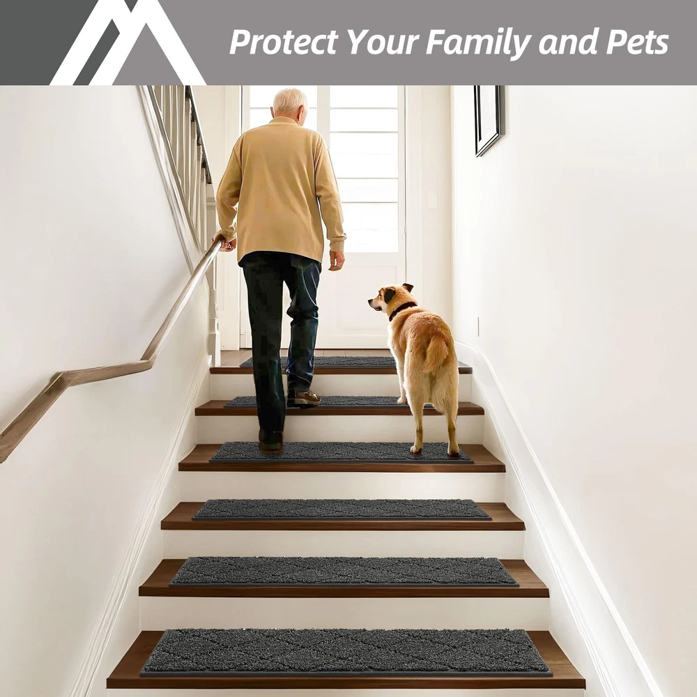 COSY HOMEER Edging Stair Treads Non-Slip 28 x 9 inches (7 pieces), Black Product Features NON-SLIP STAIR RUG: Multi-purpose Stair mats to use the TPE Non-Skid backing on dry floor, helping it to stay in place on your floor, it won't slip or scuff floors. Low profile design so doors won't get stuck.Perfect for homes with pets (dogs or cats) or kids. HOW TO USED Stair Treads for Step - Just clean, peel, and stick! If you need to reposition or remove,it won't leave any residue,always keeping your floors intact.And it won't remove or slip when meeting water. STAIR TREADS MAT SIZE:28"x9"x0.4",material:made of 100% polyester STAIR MAT NO -SLIP: Non Slip Strips can be washed repeatedly 30 times without affecting the slip resistance. Fit for restaurants,family rooms, corridors,game rooms and children's bedrooms CUSTOMER SERVICE: Our brand is always pursuing customer satisfaction as the top of priority. We are glad to receive more suggestions from our customers, if the mats have problems, we will process any request from customer with 24 hours, and replacement will be paid by us for any quality issues Shipping: Shipping is complimentary within the lower 48 US States. We Do Not Ship to PO/APO Boxes, HI or Alaska We Do Not Ship Outside of the Continental US All items ship within 24-72 hours of Payment For large items that require Freight shipping a valid phone number is required to call and schedule your delivery Terms of Sale and Feedback: Feedback is extremely important to us and eBay If you are satisfied with our transaction, please take a moment to leave Positive Feedback. YOUR Satisfaction is our #1 Priority! If there are any issues, PLEASE contact us BEFORE leaving a neutral or negative rating so that we may resolve any concerns. We PROMISE we can make you happy if you give us a fair chance. Returns / Concerns: All items qualify for returns within 14 - 30 days of receipt. Buyer is responsible for return shipping on any item that is not damaged Please be sure this is an item you want before making your purchase. Customer Satisfaction is our TOP priority! All items are IN STOCK at time of listing. Inventory on eBay changes constantly and it is impossible to maintain a perfectly accurate count of all items. Please do not penalize us if we have to issue you a refund! Thank You For Your Business!