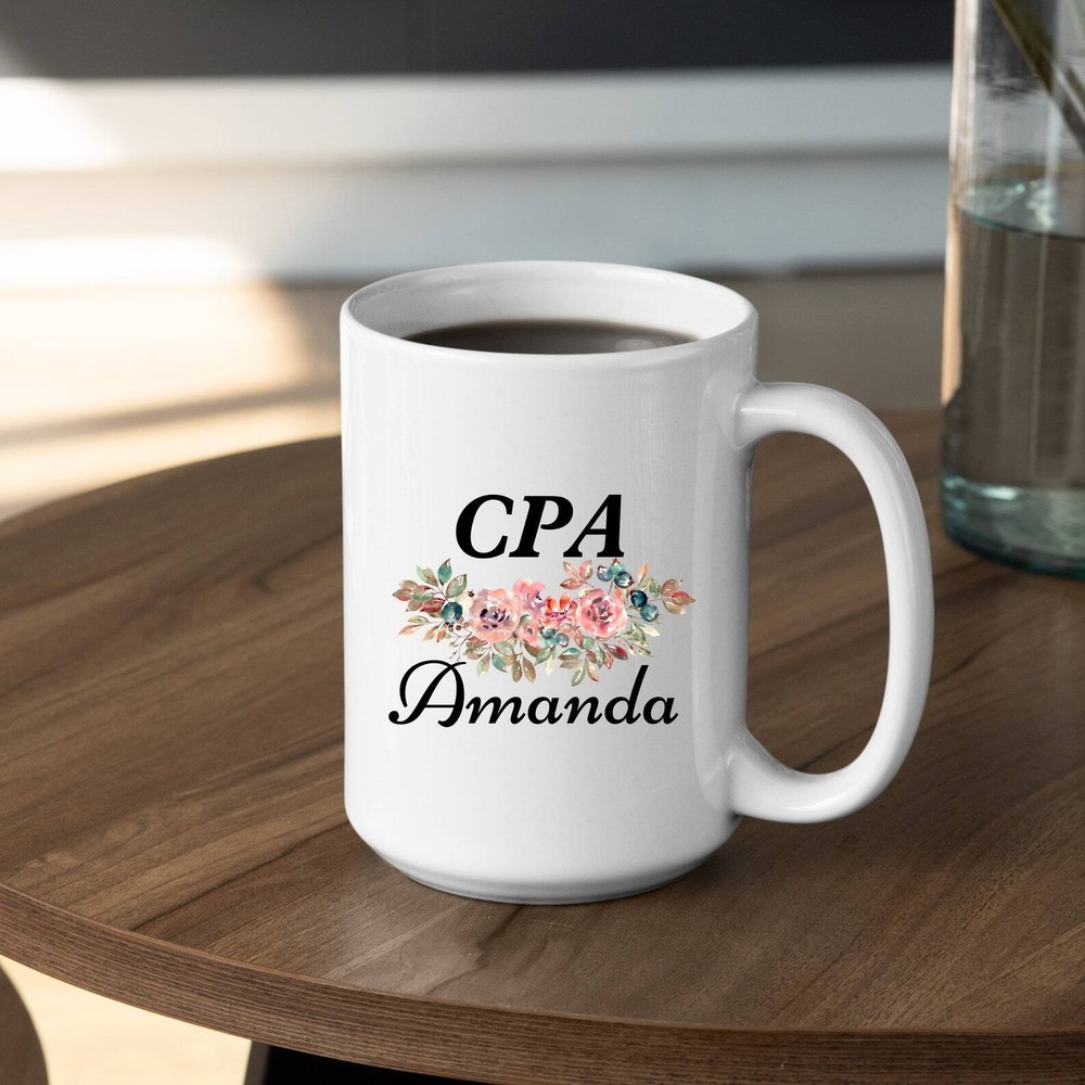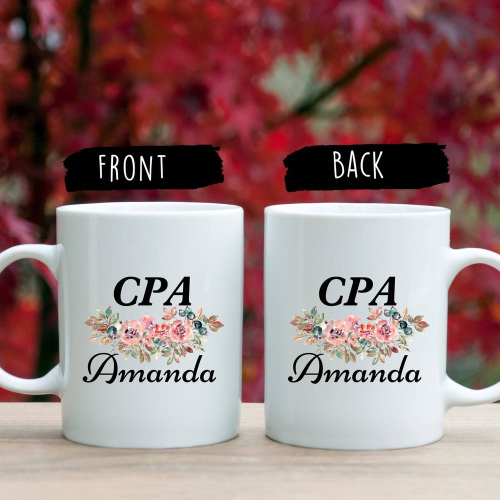 Cpa Mug For Women Cpa Gifts For Christmas Or Birthday Gift For Cpa Cpa Coffee Cup For Accountant Cpa Coffee Mug Personalized Cpa Product Details.. This high quality 11oz. ceramic white mug has a premium hard coat that provides crisp and vibrant color reproduction sure to last for years. Perfect for all hot & cold beverages. The highest quality printing possible is used. It will never fade no matter how many times you wash it. Material: 100% Ceramic. Print both sides. Dishwasher and Microwave Safe. High Gloss + Premium White Finish. Printed in the U.S.A. Personalized & Custom. We support personalized and custom mug to add custom, when placing an order, you can add notes to the "order note" in shipping address section. Also you can contact us directly via message. Shipping Info. Ready to ship in 1 to 2 business days, All products are made-to-order and proudly printed in the United States. Shipped by USPS and DHL, You will receive your order in 5-7 days. Replace & Refund. All products are defective during shipping broken, chipped will be replaced free of charge. You are not satisfied with the product, we will refund 100% money to you. If any other issues arise, please do not hesitate to message, we would be more than happy to assist you.