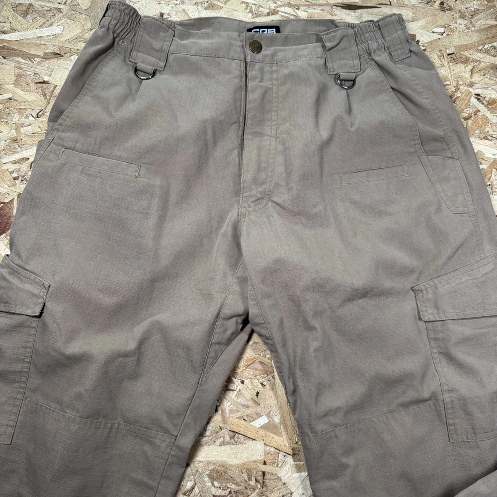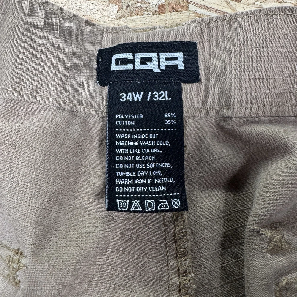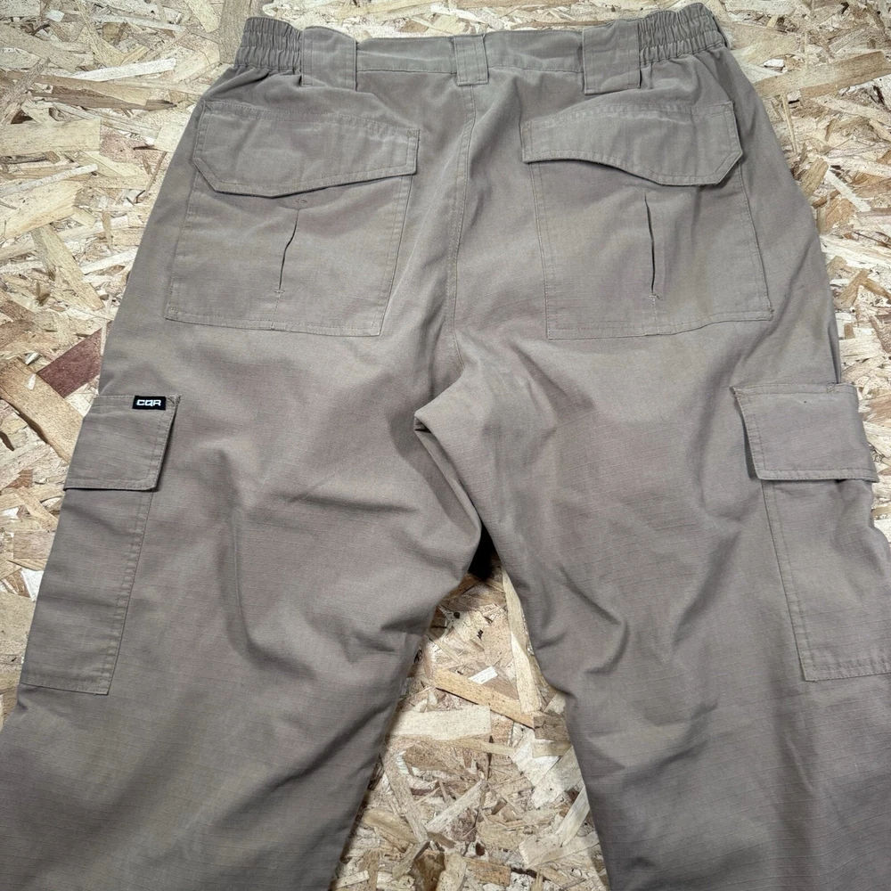 CQR Tactical Pants Men 34x32 Dark Khaki Cargo Elastic Waist Poly Cotton Canvas