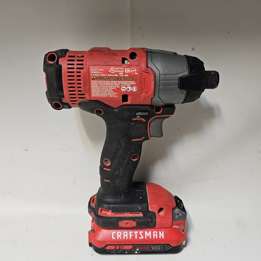 Number of Batteries:1Brand:CRAFTSMANPower Source:BATTERY PACKBattery Technology:LITHIUM-IONAuxiliary Handle:NoNumber of Items in Set:2Type:IMPACT DRILLMPN:Does not ApplyModel:CMCF800Set Includes:IMPACT DRILL / BATTERYChuck Size:1/4"Color:REDSeller Notes:“PRE-OWNED HAS SOME COSMETIC WEAR SEE PICTURES FOR DETAILS