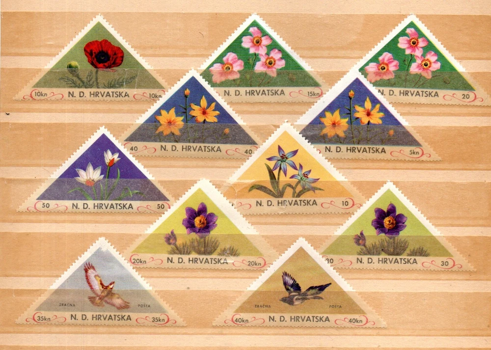 This collection builder includes 47 all different stamps from Croatia, spanning from vintage to the modern era. The stamps come in various denominations, types, and colors, all featuring the country's history and culture including WWII issues. The quality of the stamps ranges from MNH, unused, hinged, unused, no gum and used with a F/VF (fine/very fine) grade. This selection is a must-have for any stamp collector or history enthusiast interested in European and Croatian history. Please see the two different scans for further details.