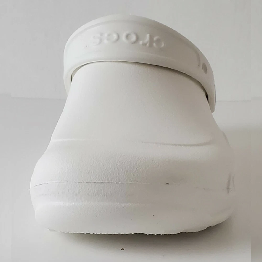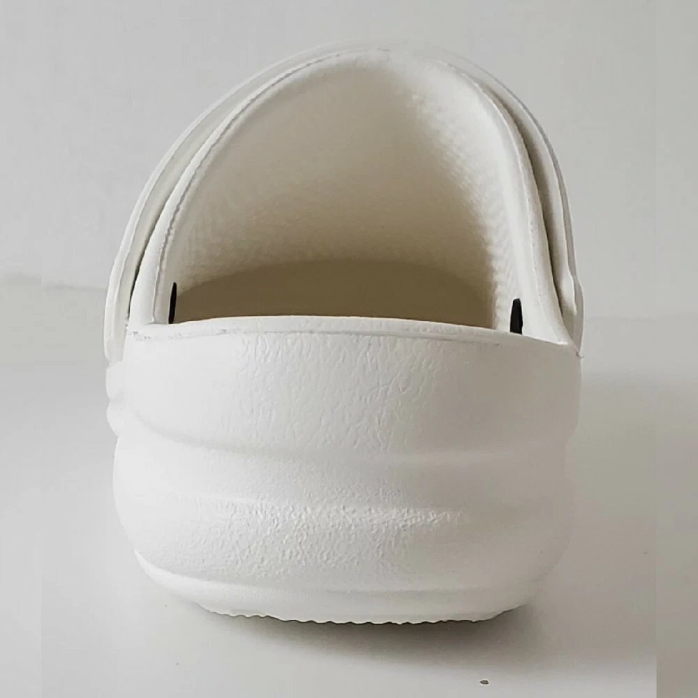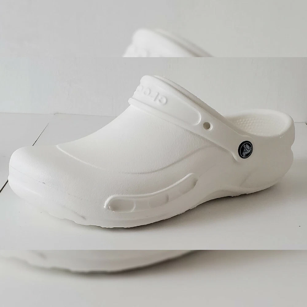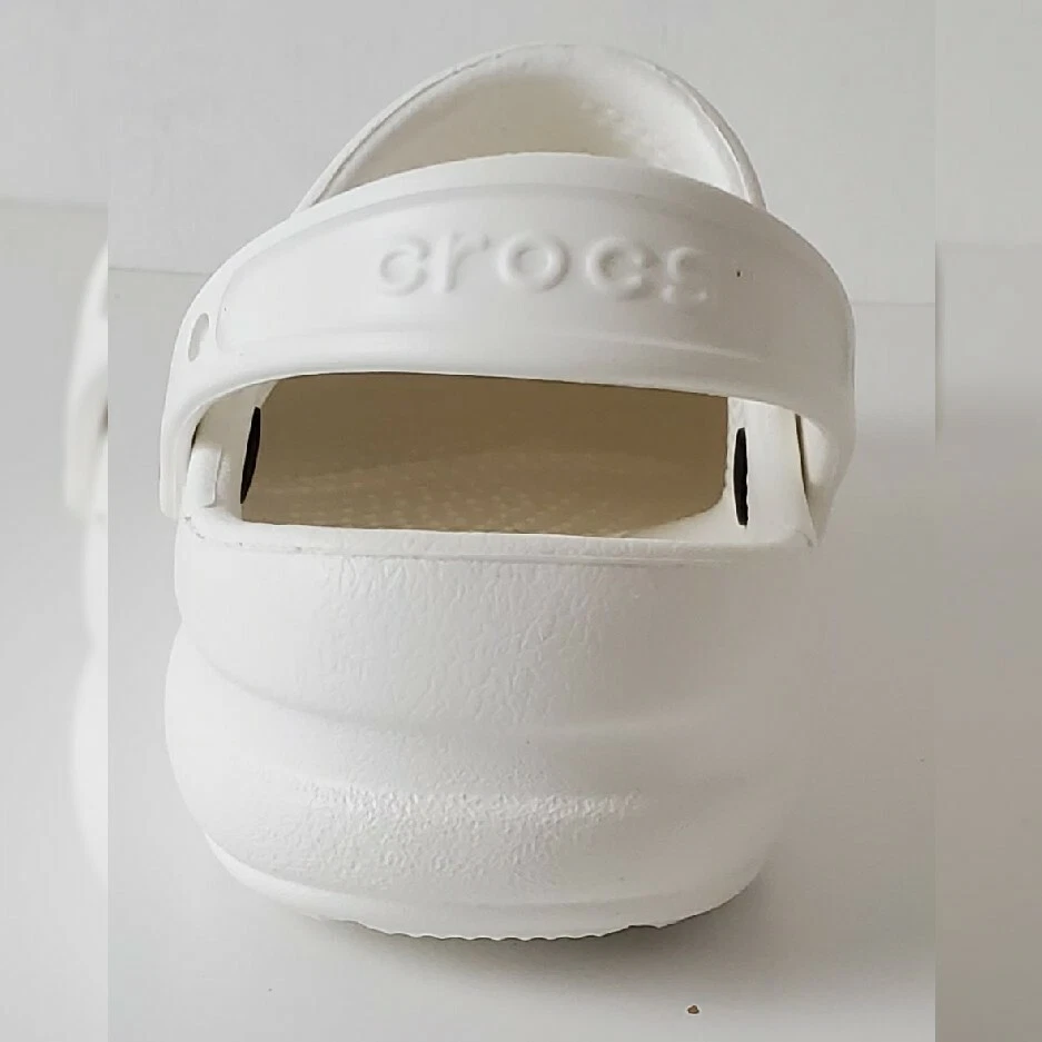 CROCS AUTHENTIC AT WORK ESPECIALIST CLOG SHOES SANDALS MEN'S WOMEN'S CERTIFIABLY COMFORTABLE SIZE M8 W10 WHITE LIGHTWEIGHT NEW WITH TAGS. The Crocs™ Specialist CLOGS, work shoes that let your feet breathe. With an increased metatarsal area, this clog offers additional protection for the top of your foot. A croslite™ footbed, closed heel and raised edging around the portals make this the perfect shoe for work. New professional styling creates the ultimate comfort shoe for the workplace. Designed to meet workplace standards with a closed heel. Exclusive croslite™ material conforms to foot creating a custom fit. Supportive arch and footbed circulation nubs ensure all-day comfort. Side ventilation ports promote airflow and are inset to protect foot from spills. Thicker metatarsal area helps protect the top of the foot. Loose fit allows foot to bend and expand naturally. Odor resistant and bacteriostatic. Simply sterilize and clean in water and bleach.FEATURES EVA upper Slip-on with pivoting strap Round toe Croslite™ foam contoured EVA footbed EVA sole Imported