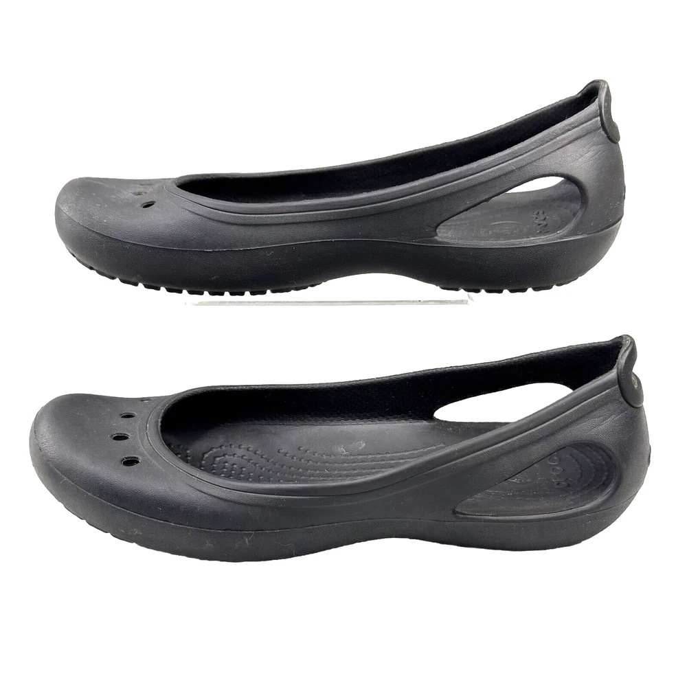 The Crocs Kadee Ballet Flats in size 7 are versatile black slip-on shoes designed for everyday comfort. These casual flats feature a solid pattern with a flat heel style, making them suitable for various occasions. Made by the brand Crocs, known for their lightweight and cushioned footwear, the Kadee flats are crafted from rubber material for breathability and comfort. Perfect for summer, fall, and spring seasons, these classic slip-ons are a stylish choice for women seeking a durable and easy-to-wear shoe option. Great pre-owned condition with minimal use. ⭐Smoke and pet-free ⭐Examine photos carefully as they are part of the description. ⭐If you need more measurements or images, do not hesitate to contact us. ⭐Ships quickly - same or next business day!