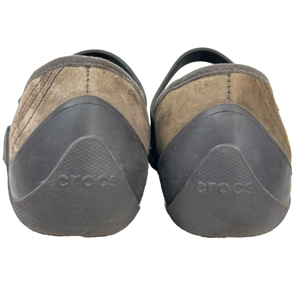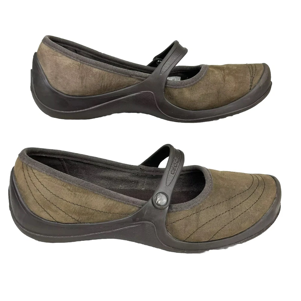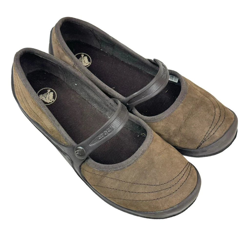 CROCS 10889 Wrapped Wedge Brown Nubuck Leather Mary Jane Shoe Slip Ons Women's Size 8 Great preowned condition. Scratched area on shoe button detail noted in photo. Color tones may vary depending on your monitor/device settings. Some photos may have been lightened to show detail. ⭐Smoke and pet-free ⭐Examine photos carefully as they are part of the description. ⭐Compare measurements with a similar piece of clothing you own that fits you well. ⭐If you need more measurements or images, do not hesitate to contact us. ⭐Ships quickly - same or next business day! Returns policy: If you receive your item and it doesn't fit, or is not what you wanted, all we ask is that you return it within 30 days, in the condition we sent it to you in. Please be aware that buyer pays for return shipping. If the item is new with tags, please do not wash or remove the tags. Store tags must be attached for a return. If they are not attached when returned, this will result in less than a full refund. Thank You! 😊