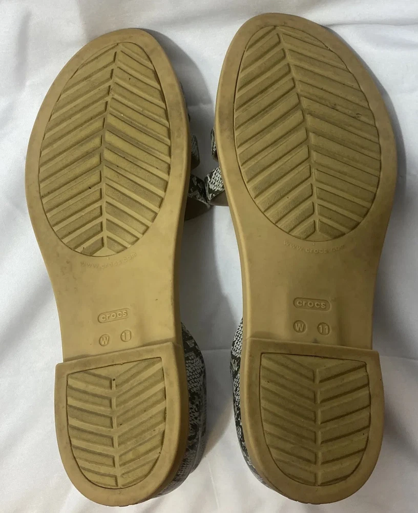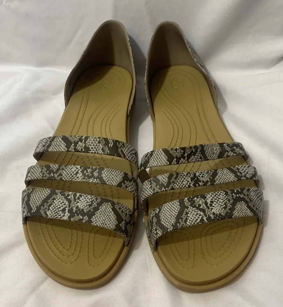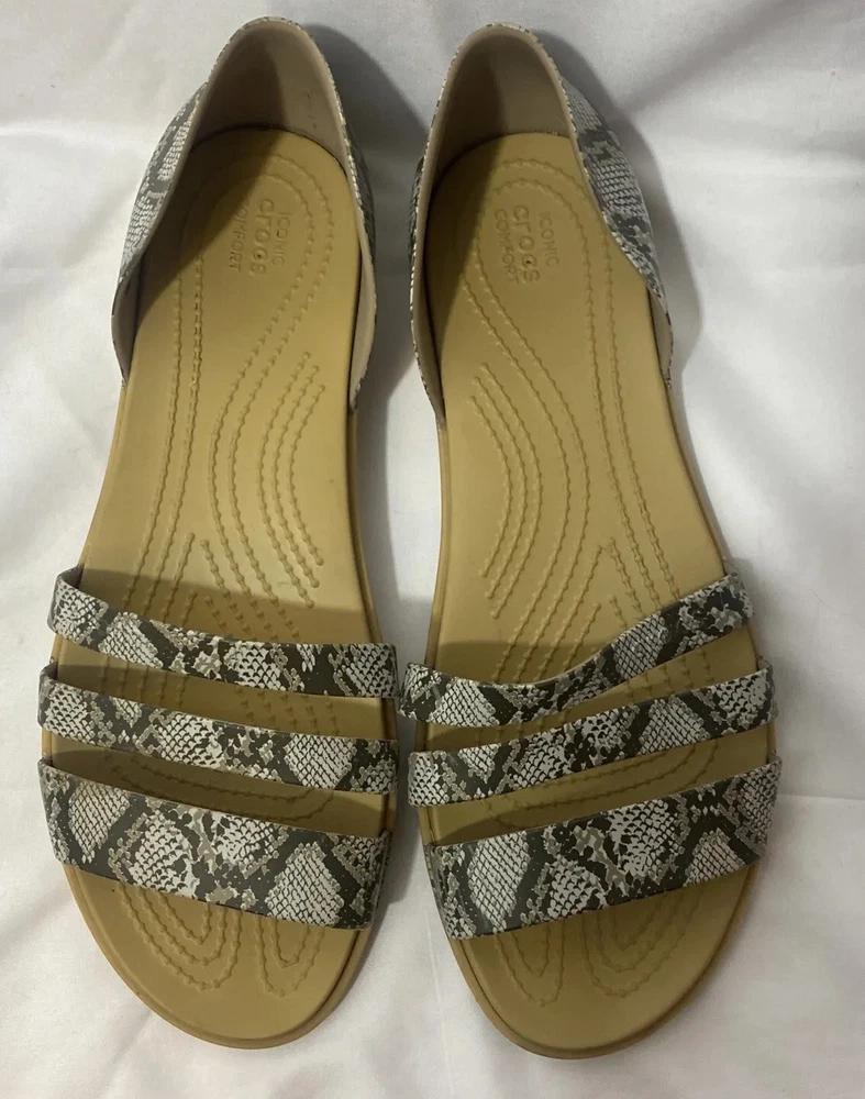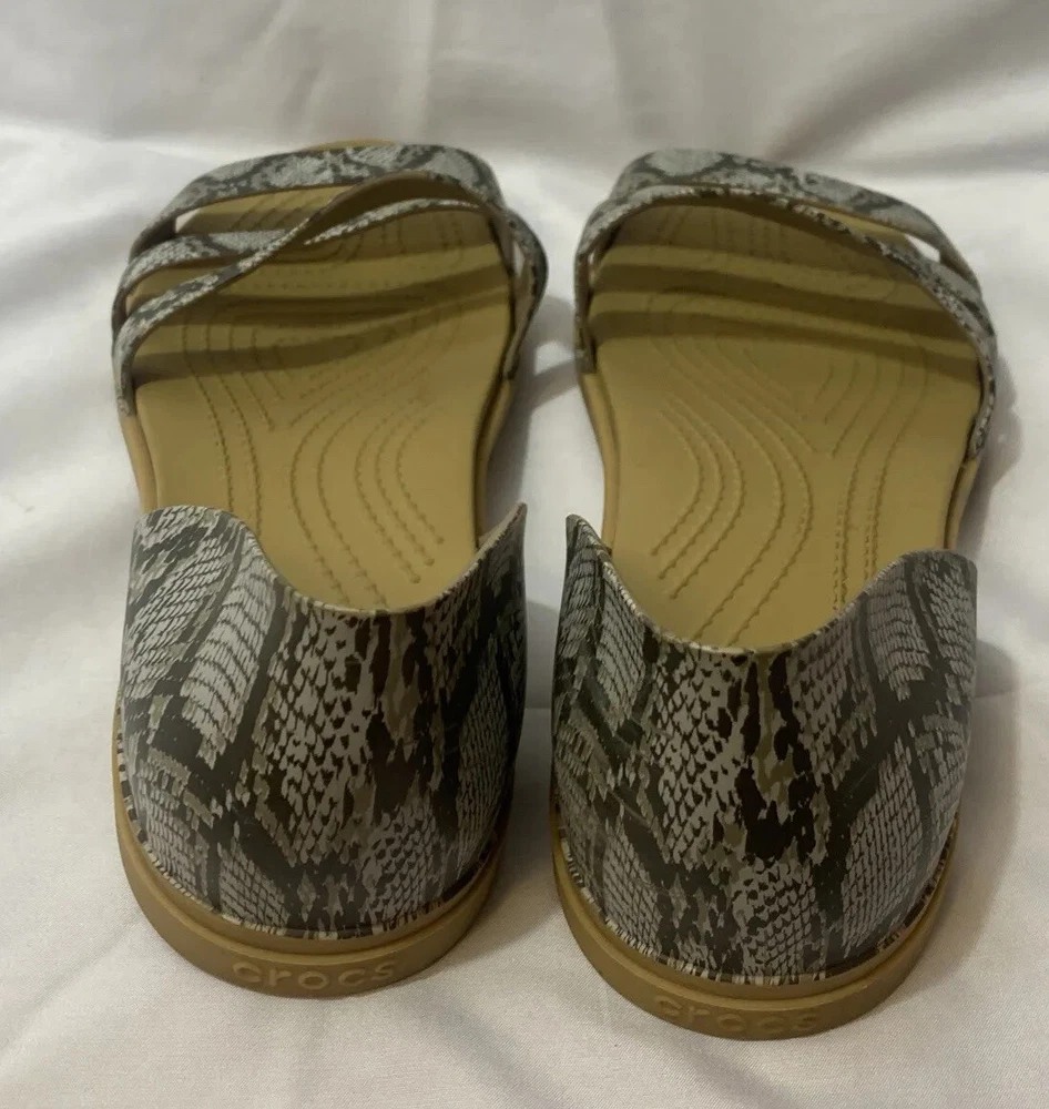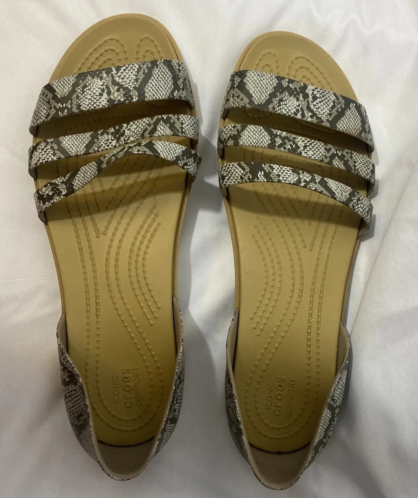 CROCS sandals woman size 11 W iconic comfort snake print flats.