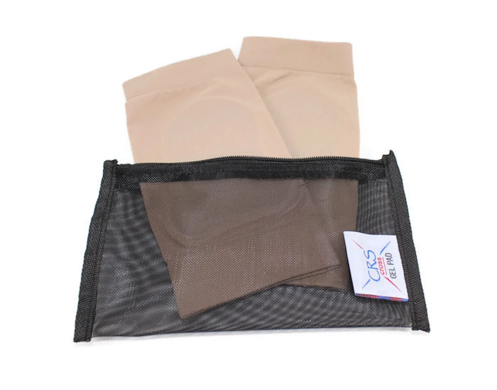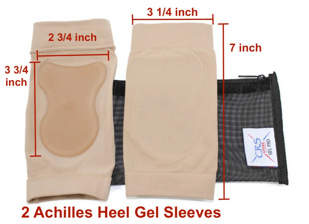 Protects the heel and Achilles tendon areas of the foot Includes one pair (2 sleeves) of CRS Cross Achilles Heel Gel Sleeves Lightweight compact design that fits in most boots and shoes Elastic sleeves help position the gel pads in the correct location to reduce discomfort from for figure skating, ice hockey, rollerblading, hiking, skiing, everyday use Stretchable sleeve; One size fit most CRS Cross Achilles Heel Gel Sleeves have a custom shaped gel pad in the back that cushions the heel and Achilles' tendon. It protects against rubbing and bumps that occur on the back of your heel area. The gel pads are attached to thin, elastic sleeves that help position the gel pads in the correct location to reduce discomfort. The Achilles Heel Gel Sleeves are designed to reduce pain and pressure to the back Achilles and heel areas of the foot. CRS Cross Achilles Heel Gel Sleeves have a light-weight compact design that will fit in most boots or shoes. Hypoallergenic design is safe for use on the skin. Great for figure skating, ice hockey, rollerblading, hiking, skiing, all sports and everyday use. They are sold in pairs, two Achilles Heel Gel sleeves per package. The included unique CRS Cross Mesh Zipper Bag is designed specifically to air dry the Gel Sleeves between uses. Achilles Heel Gel Sleeve specifications: 7 x 3.25 inch sleeve; 3.75 x 2.75 inch custom shaped back gel pad in the sleeve. Hand washable. Packaged in the USA, made in China. Designed by a former Professional figure skater, current coach and skating mom. Whether it is long hours in your boots, new boots or just sore heel / Achilles areas, don't suffer. Don’t criss-cross your laces without a CRS Cross Gel Pad.