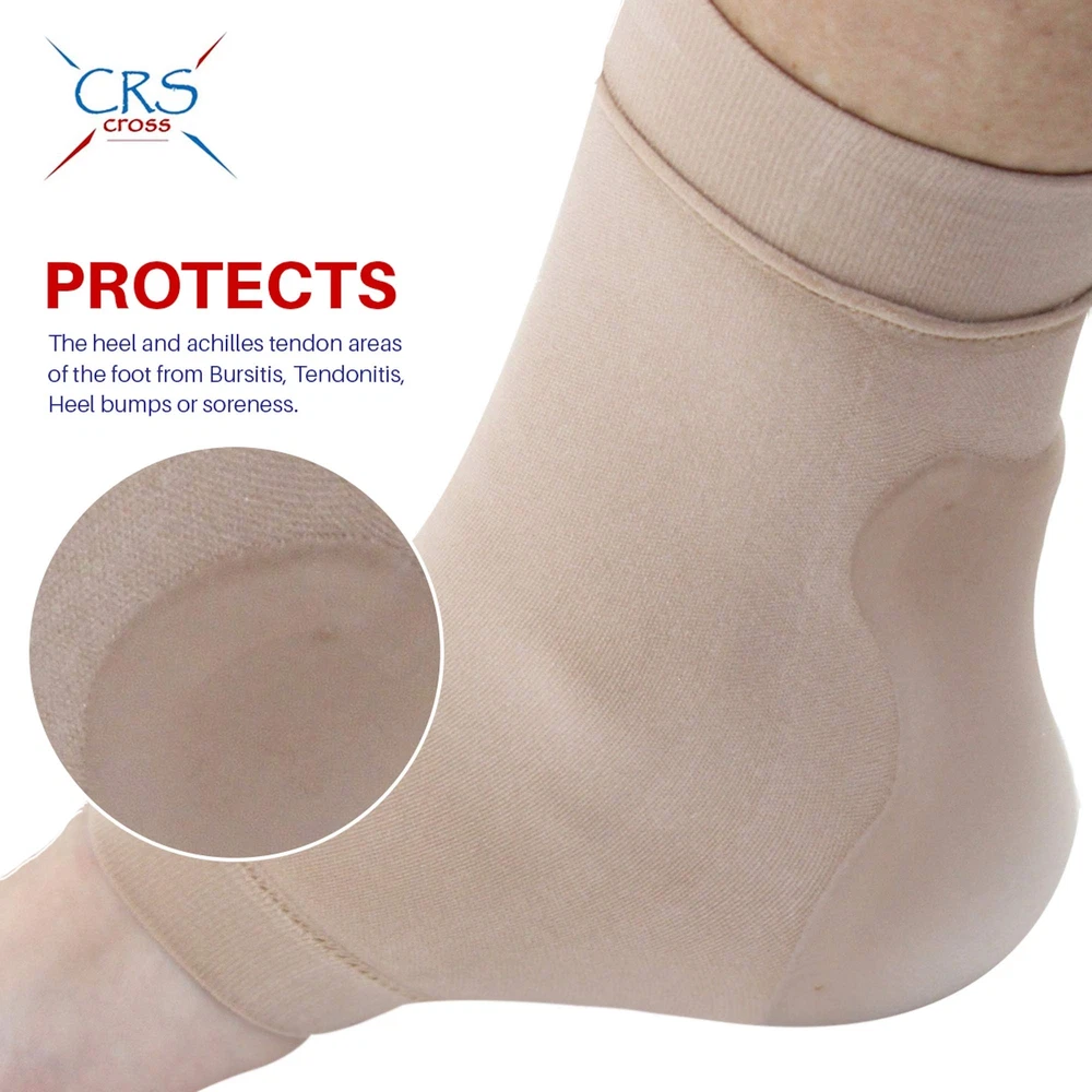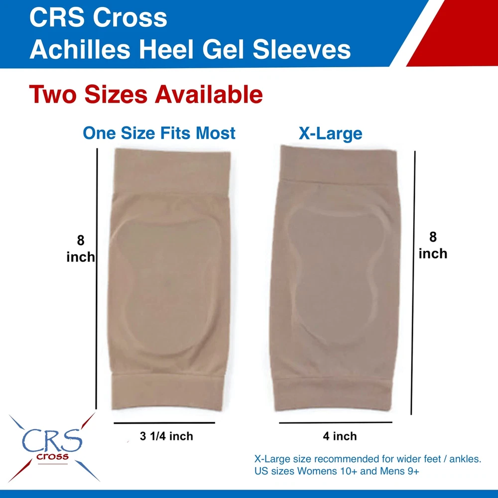 CRS Cross Achilles Heel Sleeve - Pair of Premium Padded Compression Gel Sleeve Protects the heel and Achilles tendon areas of the foot from Bursitis, Achilles Tendonitis, Heel bumps, Bauer bump, Haglund's deformity and soreness. The specially designed gel pad functions as a heel protector and achilles tendon support. Includes one pair (2 sleeves) of CRS Cross Achilles Heel Gel Sleeves and reusable mesh bag for storage. Lightweight compact design that fits in most boots and shoes. Stretchable sleeve with gel heel protectors. Available in "One Size Fits Most" and" X-Large" (for shoe sizes Women's 10+ or Men's 9+). Reusable and Washable. Elastic sleeves help position the gel heel pads in the correct location to reduce discomfort from for figure skating, ice hockey, inline skating, hiking, skiing, and long hours of standing. Avoid the mistake and discomfort of other generic sleeves. Our loyal CRS Cross Gel Sleeve customers enjoy the premium fit and feel of our custom stitched sleeve and the distinctive cushion and placement of our medical grade gel. Many of our customers have tried the other generic brands only to come back to the comfort and quality that only a premium CRS Cross Gel Sleeve can provide. CRS Cross Achilles' Heel Gel Sleeves have a custom shaped gel pad in the back of the foot sleeve that cushions the heel and Achilles' tendon. It protects against rubbing and bumps that occur on the back of your heel area ( Bursitis, Achilles Tendonitis, Heel bumps, Bauer bump, pump bump, Haglund's deformity ) The gel pads are attached to thin, elastic sleeves that help position the gel pads in the correct location to reduce discomfort and provide heel cushion. The Achille's Heel Gel Sleeves are designed to reduce pain and pressure to the back Achilles and heel areas of the foot. Good for use as heel socks, heel cushion inserts, achilles tendonitis brace, heel inserts, achilles tendon brace, achilles tendonitis brace and foot brace. The heel cushion pads are a perfect heel pain relief product for all activity levels. CRS Cross Achilles Heel Gel Sleeves have a light-weight compact design that will fit in most boots or shoes. Hypoallergenic design is safe for use on the skin. Great for figure skating, ice hockey, rollerblading, hiking, skiing, soccer, football, running, field hockey, all sports and everyday use. They are sold in pairs, two (2) Achilles Heel Gel sleeves per package. The included unique CRS Cross Mesh Zipper Bag is designed specifically to air dry the Gel Sleeves between uses. Achilles Heel Gel Sleeve specifications: 7 x 3.25 inch sleeve; 3.75 x 2.75 inch custom shaped back gel pad in the sleeve. Hand washable. Packaged in the USA, made in China. Designed by a former Professional figure skater, current coach and skating mom. Whether it is long hours in your boots, new boots or just sore heel / Achilles don't suffer. Don't criss cross your laces without CRS Cross. Shipping We offer FREE shipping on all orders! We ship within Three business days of payment, usually sooner. We use a selection of shipping services such as UPS, FedEx, USPS etc. We only ship to the lower 48 states, no APO/FPO addresses or PO Boxes allowed. Local pickups and combined shipping options are not provided at this time. Return You can return a product for up to 30 days from the date you purchased it. Any product you return must be in the same condition you received it and in the original packaging. Please keep the receipt. Payment We accept payment by any of the following methods: PayPal Please pay as soon as possible after winning an auction, as that will allow us to post your item to you sooner! Feedback Customer satisfaction is very important to us. If you have any problem with your order, please contact us and we will do our best to make you satisfied. Contact Us If you have any queries, please contact us via ebay. We usually respond within 24 hours on weekdays. Please visit our eBay store to check out other items for sale! Thank you for shopping at our store.