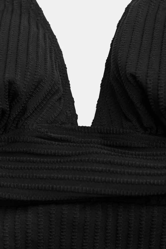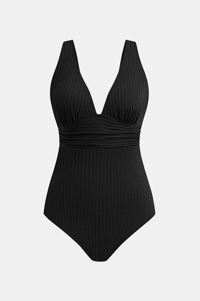 CUPSHE Black Ginger Ribbed & Ruched One-Piece - Medium *NWT*