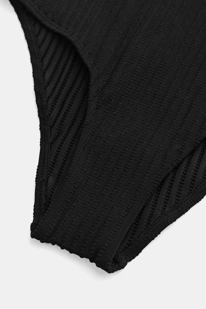 $ 11.61CUPSHE Black Plunging Twist Mesh Panel One Piece Swimsuit Medium *NWT*