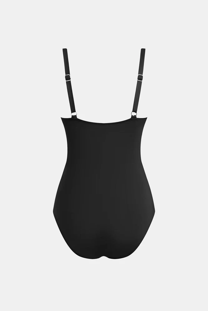 $ 6.85CUPSHE Plunge Paneling Cross Tie Back Long Torso Swimsuit Black Small *NWT*