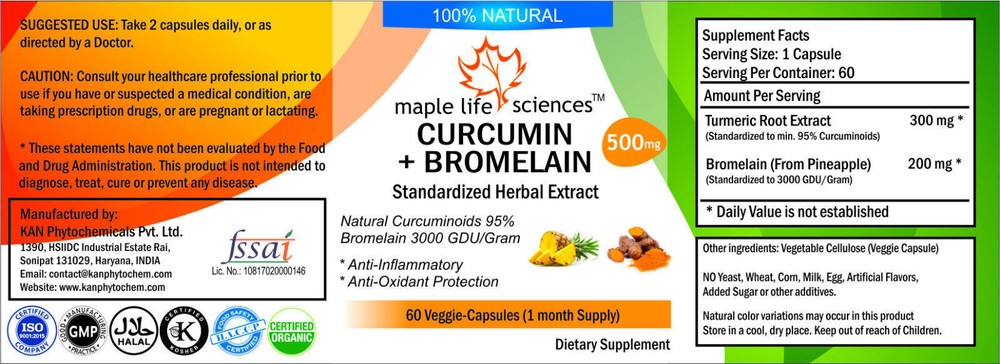 This listing is for veggie-capsules of Curcumin 95% extracted from turmeric roots + Bromelain 3000 GDU/gm extracted from Pineapple. Each 500 mg Capsule contains 300 mg Curcumin 95% and 200 mg Bromelain. Capsule Size: 500 mg This product is suitable for vegans. Manufacturing Date is not older than 2 months at the time of order. Expiry date is two years from the date of Manufacturing. About Curcumin Curcumin is the main biologically active phytochemical compound in Asian native (Specially Indian native) turmeric dry roots. It is extracted from turmeric roots and then Concentrated, purified & packed in air-tight tri-laminated aluminium bags. Curcumin is widely used as herbal alternative medicine for treatment of various illnesses worldwide. In nutraceuticals field Curcumin is gaining a significant importance due to its several medicinal benefits. Our Curcumin is natural curcumin which contains all three Curcuminoids: Curcumin, desmethoxycurcumin, bis-demethoxycurcumin. Each batch of our Curcumin is standardized to contain at least 95% of all curcuminoids by HPLC. About Bromelain Bromelain is a protein-digesting (proteolytic) enzyme complex found in the fruit and, in higher concentrations, in the stem of the pineapple ( Ananas comosus ). It is able to hydrolyze or break down a wide variety of protein types in a range of both acid and alkaline environments. Originally isolated in the late 1800s, bromelain can play a key role in digestion, and perhaps more importantly, its properties have prompted many practitioners to use it as an agent in wound healing and the prevention of infection and inflammation for decades. What Does Bromelain Do? Put simply, bromelain breaks down protein. This has fairly obvious benefits when you consider that many of the foods you eat contain high amounts of protein and they have been thoroughly cooked, destroying most of the naturally occurring enzymes. As a proteolytic enzyme it assists the body’s own digestive mechanisms in reducing very large, complex protein molecules into smaller peptide units or individual amino acids. These smaller components are crucial for your own production of muscle, neurotransmitters, and other protein-based molecules that your body produces. Many of bromelain’s benefits; however, are actually based on absorption of the intact enzyme in the small intestine; it is this absorption makes possible its systemic effects such as reducing inflammation. WARNING: Many sellers on ebay and other websites are selling turmeric root powder in the name of Curcumin. Fact is Turmeric root powder is the source of natural Curcumin but it only contains 5% to 7% curcumin and rest is oil and impurities. Curcumin needs to be extracted from turmeric root powder and purified to minimum level of 95%. So please do not confuse Curcumin with Turmeric Root Powder. All of our herbal extracts are FREE of any type of fillers or additives like magnesium stearates, gelatin, silicates, gluten, corn, wheat, rice, yeast, starch, titanium dioxide, artificial colors, artificial flavors or preservatives. In order to provide consistency in quality, all of our products undergo following tests: Assay with HPLC / Titration / Gravimetry, Residual Solvent Analysis with GC-HS, Heavy Metal Testing with AAS, Microbiology Analysis, Impurity Profiling and Stability testing. Ebay does not permit health claims regarding herbal products. For information regarding scientific studies on this herbal product, contact us through ebay. IMPORTANT SHIPPING INFORMATION: All of our items will be dispatched from India through registered Indian Post Airmail within 1-2 business days. It takes approx. 3-5 weeks to deliver in North America, UK, Australia and most part of the world. Tracking number will be provided within 1-2 business days but it may take a while before tracking information will be available online. IMPORTANT SHIPPING INFORMATION for EU (European Union) Customers: When parcels are send to EU they go through custom clearance in your country. Your Custom department may charge import duty or taxes in your country at the time of delivery. We want to let you know that any taxes or duty demanded in your country are buyer's responsibility, we will not pay for it or reimburse it. 100% Satisfaction Guarantee Customer satisfaction is our first priority. In the unlikely case that there is a problem with your purchase, please contact us prior to leaving feedback so that we can improve the situation. When you are satisfied with our product, please leave us a positive feedback. THANK YOU.