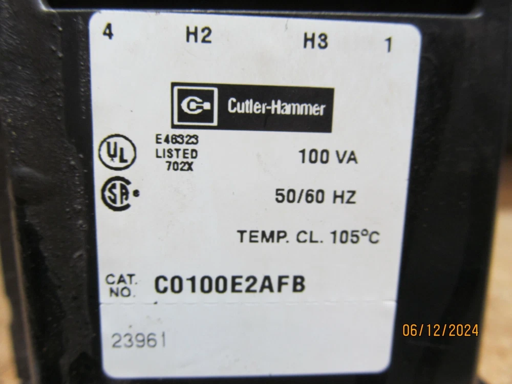 CUTLER HAMMER C0100E2AFB INDUSTRIAL CONTROL TRANSFORMER 100VA