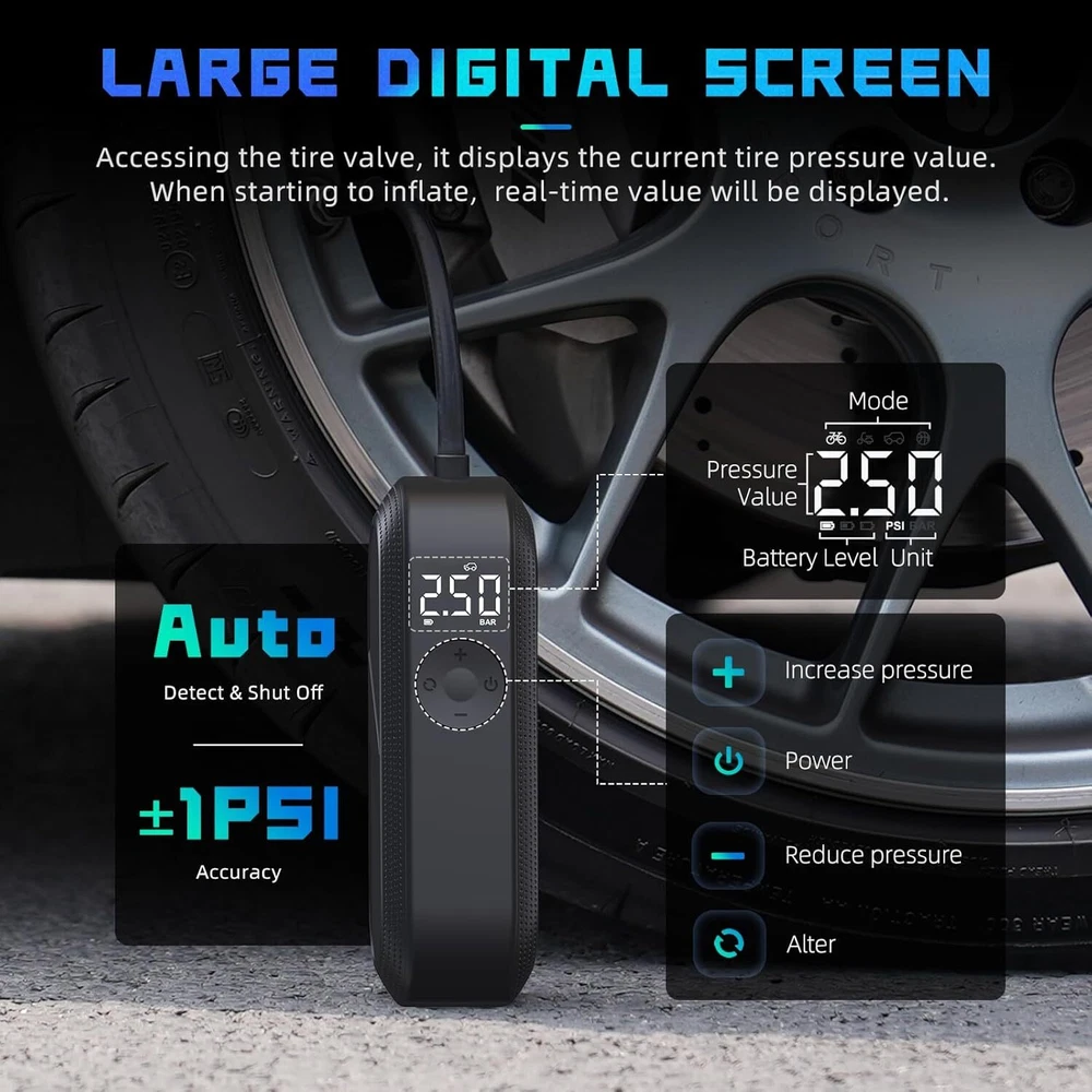 This electric air compressor is a game-changer! Super fast and powerful—fills car tires in under 2 minutes and bike tires in 90 seconds. Super portable, works with both valve types, and the built-in gauge is super handy. Perfect for emergencies or quick top-ups. Fast shipping too—highly recommend!