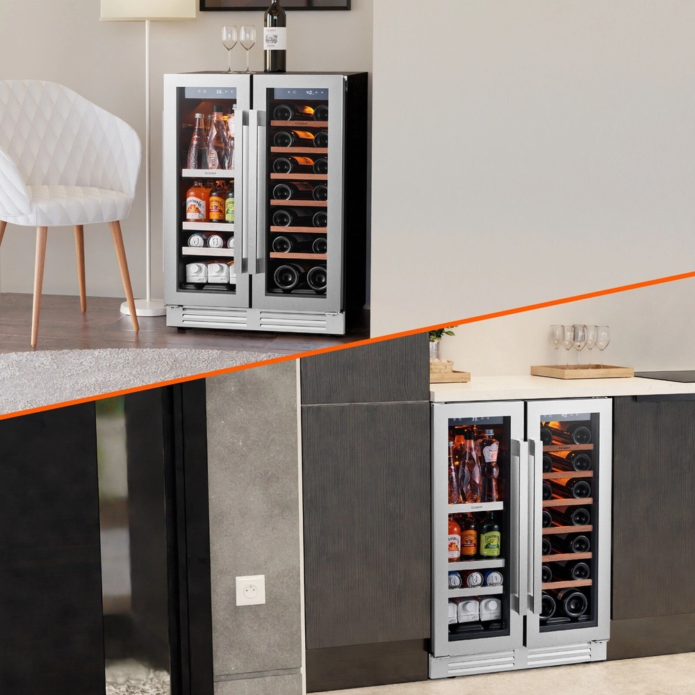 Ca'Lefort 24" 80 Cans Capacity Wine Cooler&Beverage Refrigerators Freestanding Ca'Lefort Wine and Beverage Refrigerator, 24 Inch Wine and Beverage Cooler Fridge with Touch Panel Chilled 36°-72°F and 3 Color Led Lighting Low Noise, Holds 21 Bottle and 60 Cans 3 Color LED Lighting White & Blue & Amber Control Panel Precision Digital Electronic Touch Panel Temperature Range Chills Down to 36°F (36°F-72°F) Large Capacity 5.65 Cu.ft-160 L Left Zone 60 Standard 12 oz. Beverage Cans Right Zone 21 Standard 750 ml Wine Bottles Protective Door Full-Size 304-Grade Stainless Steel With Dual Grey Tempered Glass Door Hinge Hidden Handle Ergonomic Aluminum Alloy Handle Certification ETL & DOE Packaging Safety 6A About this item This Beverage Refrigerator Features 3-Color LED Lighting in Soft White, Cool Blue and Retro Amber. You Can Set It According to Your Mood to Illuminate Your Collection and Create an Immersive Environment for You and Your Guests. Please note that this product belongs to the Ca’Lefort Brand only, and the Ca’Lefort logo is printed on the product and packaging. The Ca'Lefort Dual Zone Wine and Beverage Refrigerator. It's Capacity is 160 L/ Volume 5.65 Cu.ft /24 Inch Wide, 34 Inch Height/ Hold 21 Bottles (750 ml), 60 12 oz Cans . Enough to Store Wine and Beverage, Water, Or Soda and Some Drink For All Your Family'S Favorites. The Right Zone's Natural and Environmentally Carbonized Wooden Shelves Made the Original Charcoal Roasting Process. Temperature Control Range is 36-72F (2-22C)/ Upgraded Compressor/ Carbon Filter Air Filtration / Vibration Dampening System/Built-In Or Freestanding/ ETL and DOE Certification/ 3 Years Compressor, 2 Years Parts , and After-Sales 18 Hours Per Day Online. Precision Digital Electronic Touch Panel , Set The Ideal Temperature To Give You Perfectly Chilled Drink Every Time. It Designed with Galvanic Stainless Steel Color and Brushed Finishes, Can Perfectly Match with the Apperance, Plus the Auto Keypad Light Turn Off Would Even Emphasize the Simplicity and Uniqueness of the Control Panel. 304-Grade Stainless Steel , Full-Extension with Dual-Pane Gray Glass Door Offers An Elevated Appearance Also Hidden Hinge Design. With Elegant Aluminum Alloy Handle That Fits Perfectly Into Your Home Décor. Sales service Sales service Brand Certified Refurbished Goods We offer high-quality pre-owned and official refurbished items at up to 50% off retail prices, ensuring full functionality and performance. All products undergo rigorous inspection and testing by our certified technicians to guarantee optimal operation. While items may show minor cosmetic imperfections (e.g., scratches, scuffs) or packaging damage, they are fully operational and backed by a 1-year warranty. More Details Appearance: May have slight blemishes, but no structural damage. Packaging: Original boxes may be damaged;accessories are included. Performance: Functions identically to new units, with no compromises on quality or durability. Confidence in Every Purchase Compatibility Advice: While we cannot confirm specific use cases, our team is available to answer questions and ensure suitability. Why Choose Us? ✅ Cost-Effective Item: Save significantly without sacrificing quality. ✅ Brand-Backed Warranty: Official refurbished items include 1-year manufacturer support. ✅ Ethical Sustainability: Extend product lifespan while reducing waste. Thank You for Considering Our Selection! We’re committed to your satisfaction.If you have questions or need clarification on an item’s condition, please contact us by ebay message!