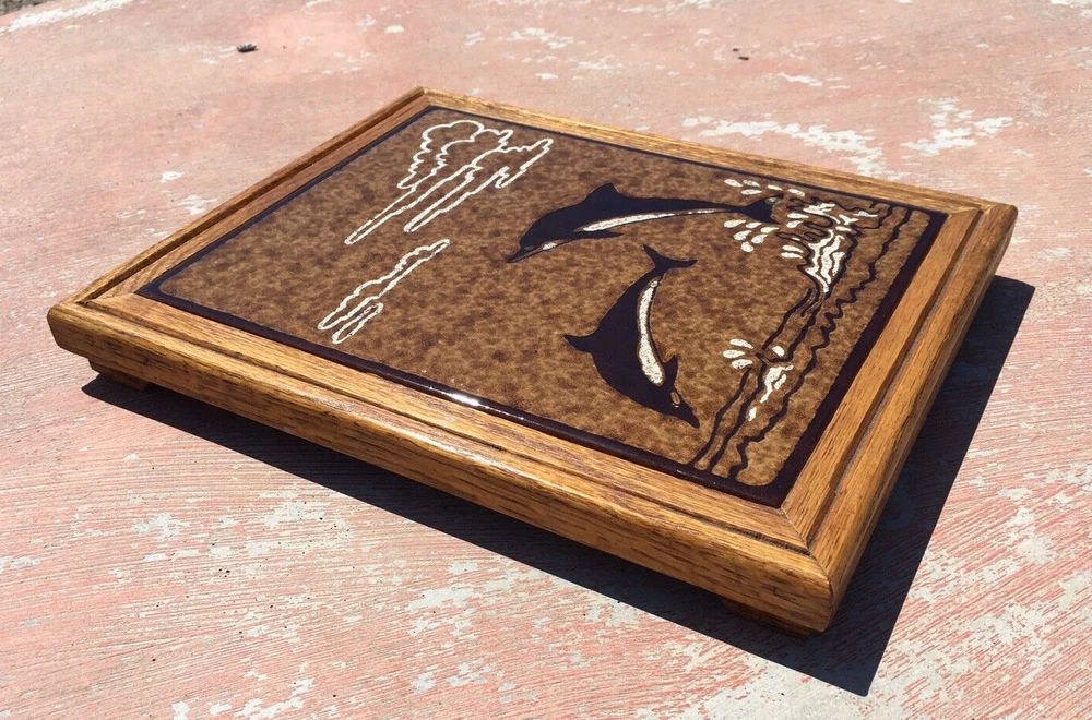 Vintage Italian Ceramic Tile Trivet Dolphins Playing Wood Frame Signed Cabbiani 1992 in excellent condition as can be seen in attached photos. Measures 11 3/4 x 9 3/4 x 1 3/4" footed with felt to prevent scratching to surfaces. Please review all actual item pictures to further describe condition and to show any other imperfections. Comes from a smoke free, pet free home. Along with "recycling" items of yesteryear, I emphasize the importance of environmental safety and not abusing our Earth's natural resources. Recycled materials may be used when packing merchandise and will not compromise the integrity of safe delivery.