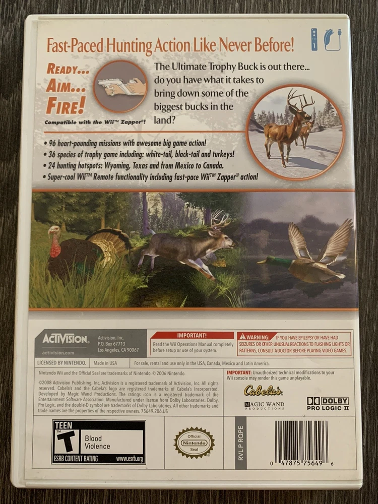 Cabela's Trophy Bucks (Nintendo Wii, 2008).