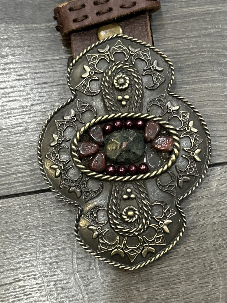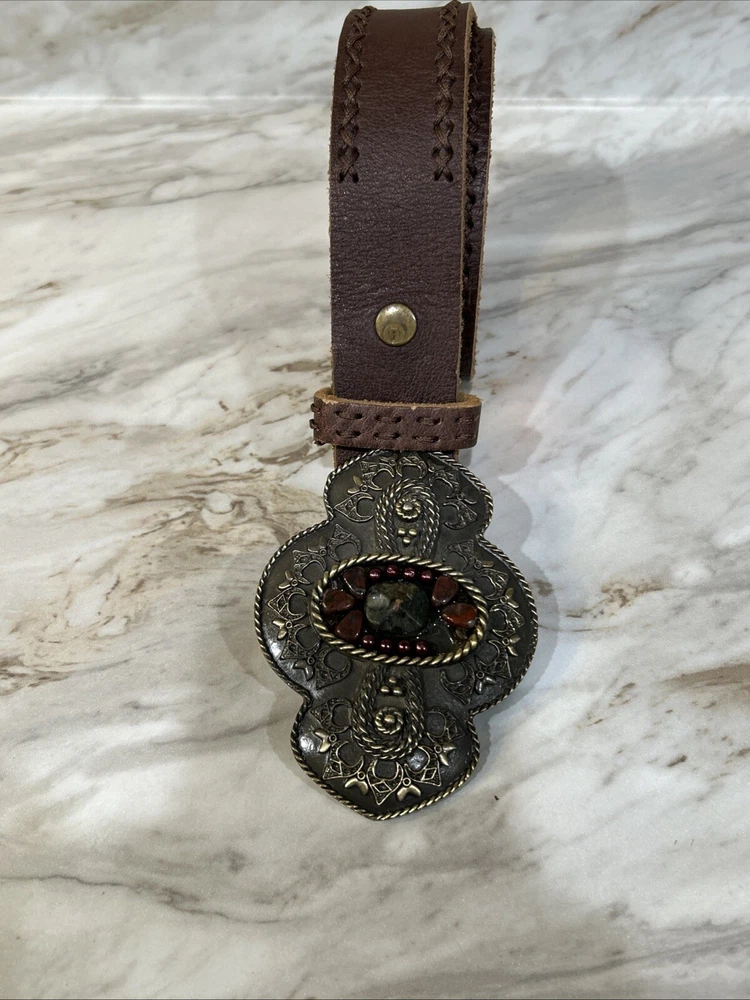 Cabi Belt With Large Ornate Stone Buckle. Medium
