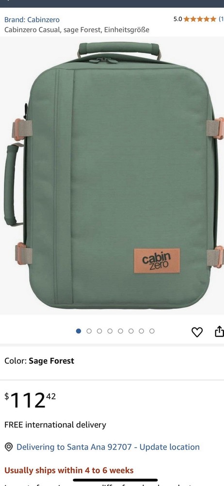 Color: SAGE FOREST UNISEX ADULT It has a large capacity but is as compact and light as possible and features a quick locking zipper system The tough design blends into the wild, countryside street corners, urban subways, and any destination The size is 6.5 gal (28 L) and can be carried on a plane ✈️ in addition to being able to store items for 1 to 6 days Equipped with a tag plate for the lost baggage discovery system "OKOBAN", you can register your 26 digit identification ID online and help you find it easily when you lose your bag on your trip Weight: 21.3 oz (600 g); Capacity: 28L Compatible Devices: 12-15.10 inches Description CABINZERO 'Classic 28L' ultra light cabin bag with pannier rack.