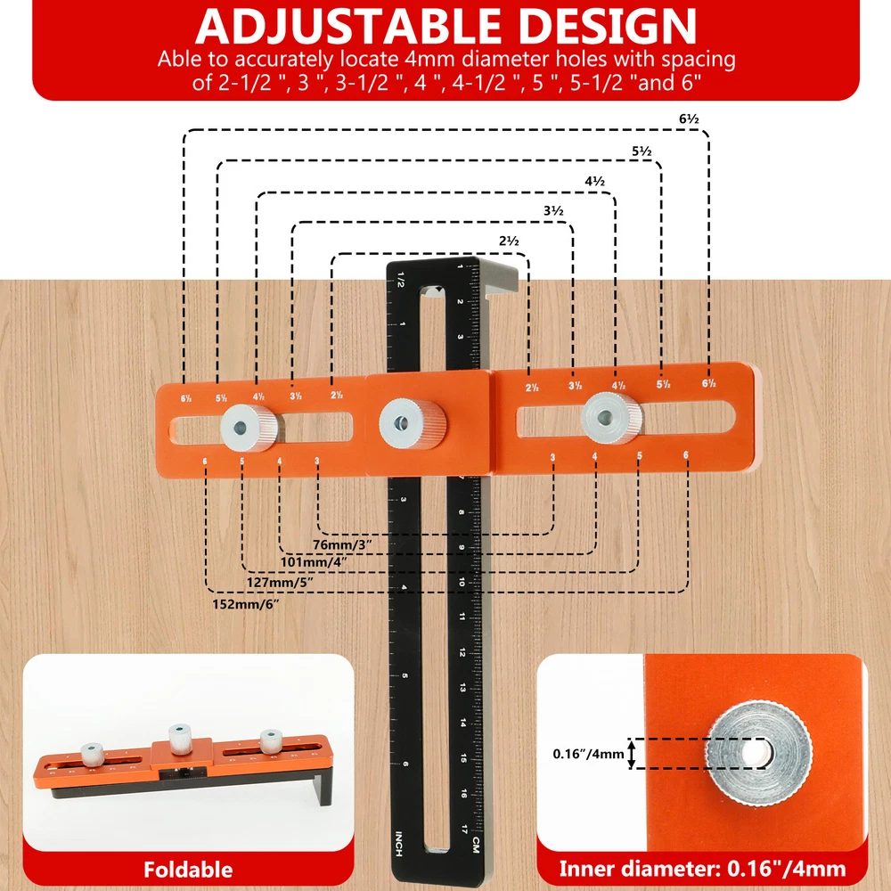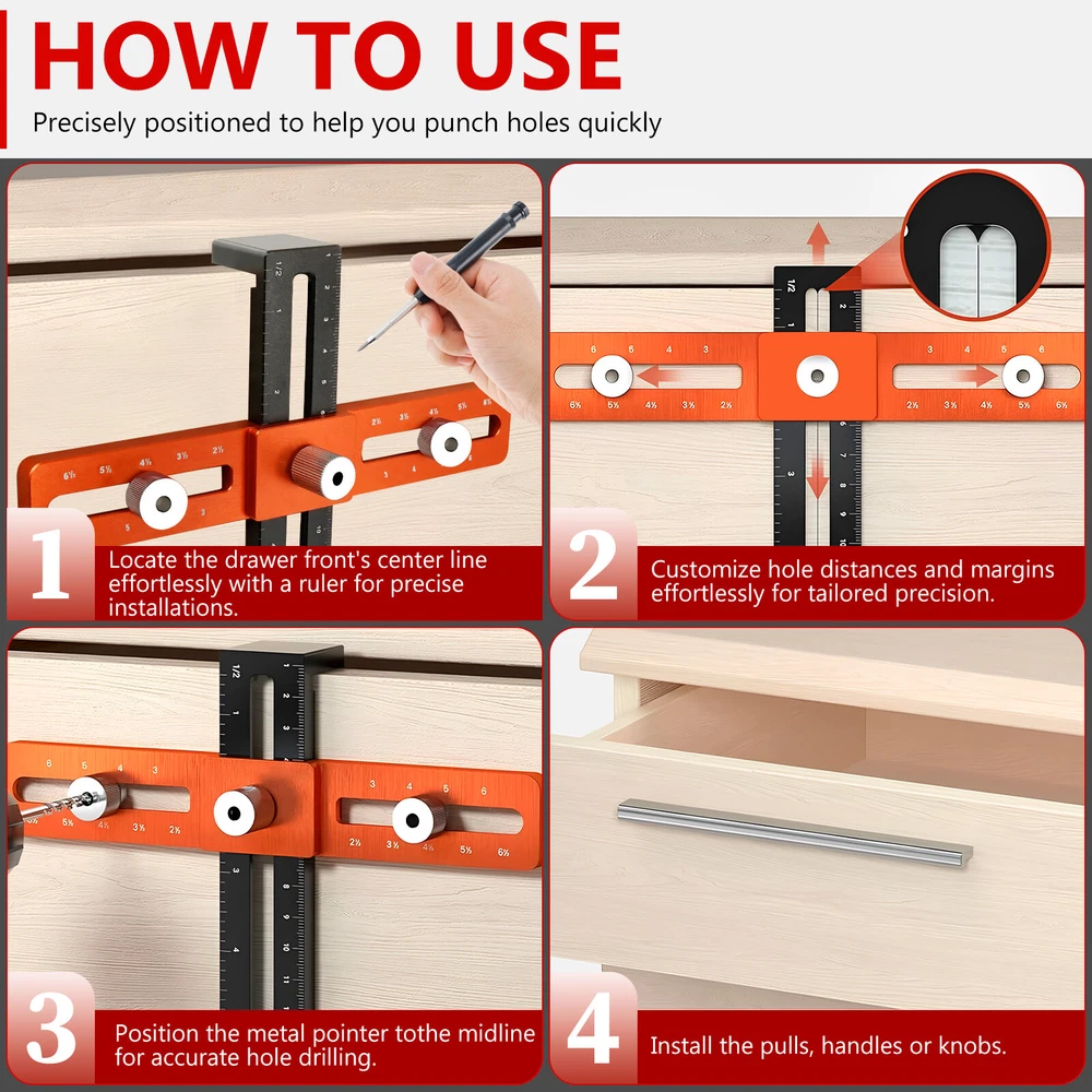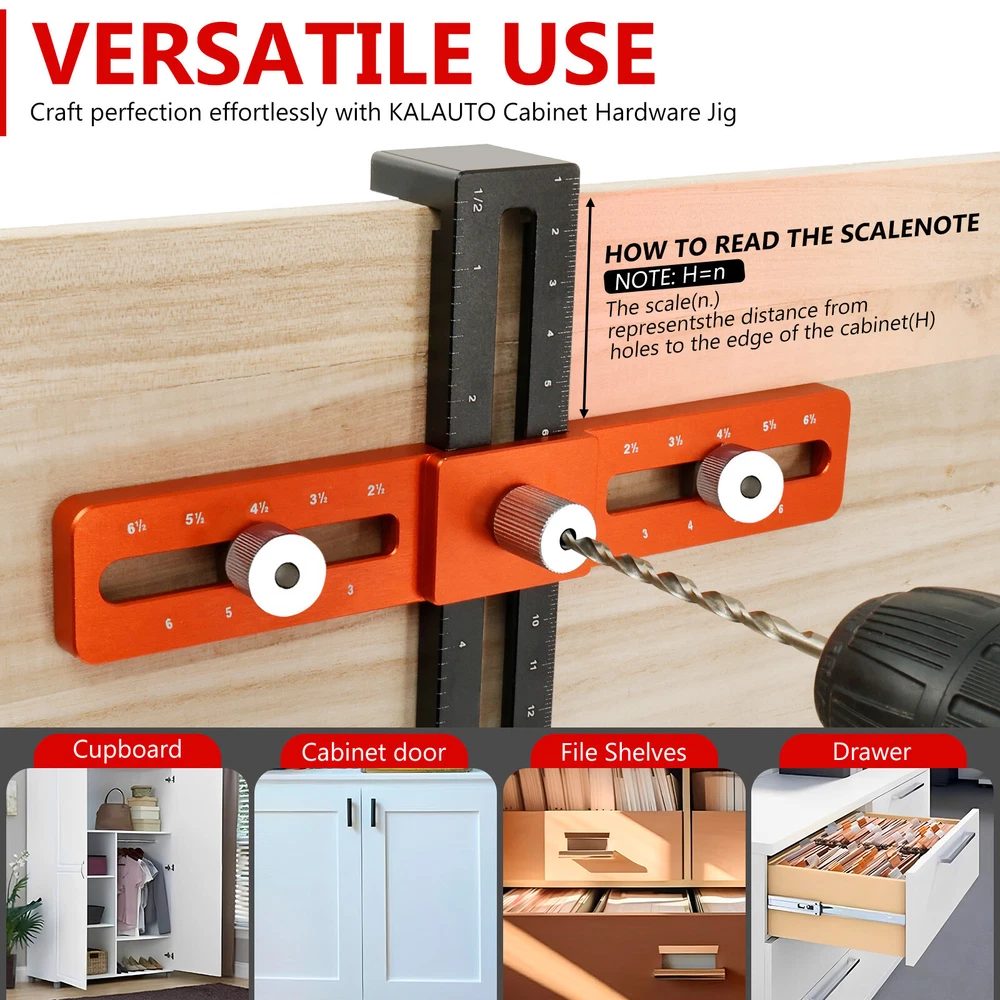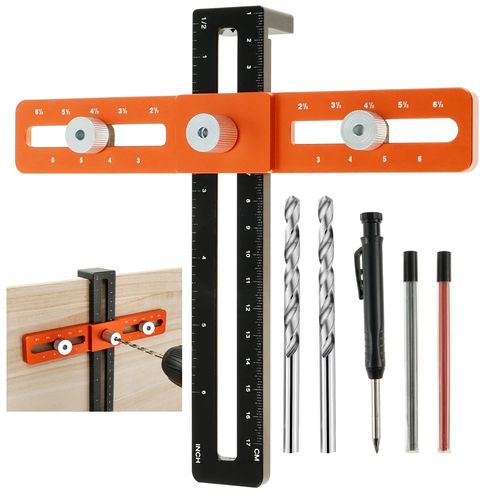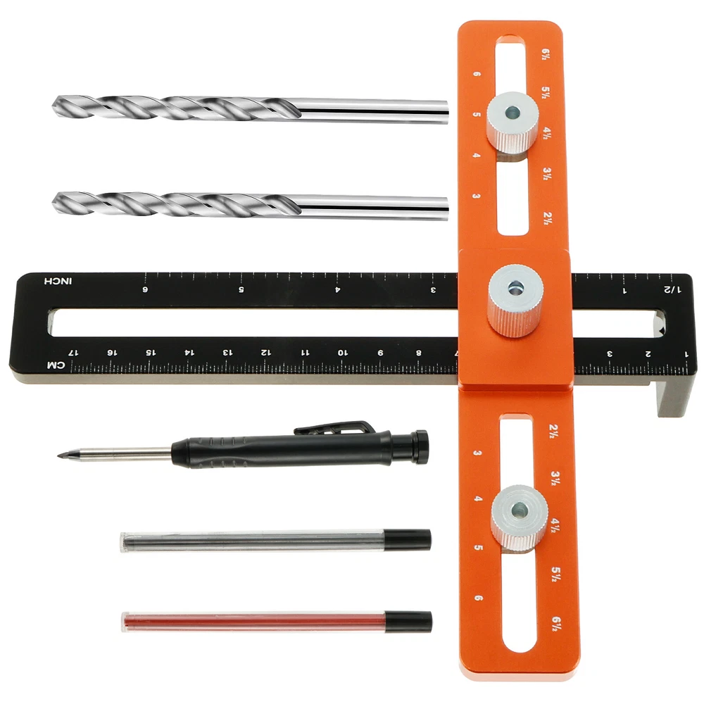[---Welcome TO Our Store! Happy Shopping! Happy Life---] Highlight description: [Deep Hole Pencil for Marking] This cabinet hardware jig comes with a deep hole pencil and 8 refills. The deep hole pencil has a tip length of 100mm, which can reach into areas that other carpenter marking pens cannot reach, suitable for use in marking through holes or other small areas [Premium Aluminum Alloy Material] This cabinet handle drill guide is made of premium aluminum alloy, which is sturdy and wear-resistant. High precision jig helps achieve precise positioning. This enduring jig is your ideal hardware and woodworking tool [Support Various Hole Spacing] The drilling guide with 2 cabinet spacers provides stability when drilling recessed cabinet style drawer fronts. It can achieve precise positioning and capable of accurately positioning hole spacing at 2 1/2inch, 3inch, 3 1/2inch, 4inch, 4 1/2inch, 5inch, 4mm in diameter, and 6.7inch up and down distance [Easy to Use and Install] This cabinet template tool is easy to install and can help you save long hours of measuring time. It is a good helper for woodworking or DIY to greatly improve installation efficiency [Widely Uses] This cabinet handle jig can be used to install kitchen drawers, cabinet handles, door handles, drawer panels, etc. It fits most cabinet door stiles and rails and is suitable for recessed drawer fronts, making it a great tool for anyone who needs precise drilling and installation Detailed description: Description: Our cabinet hardware jig is designed to help drill holes and install cabinet handles. It provides precise positioning and supports various hole spacing. It comes with a deep hole pencil for making in the limited space. It is an ideal hardware and woodworking tool. Feature: Precise Scale: This cabinet pull jig adopts precise scale and can achieve accurate positioning. It is quick and easy to use, which can improve your work efficiency. Stable and Fast: Our cabinet template tool is stable and fast for positioning, which is suitable for woodworking and DIY. It is ideal for installing kitchen drawers, cabinet handles, etc. Specification: Product Name: Cabinet Hardware Jig Material: Aluminum Alloy Size: Orange edge: 19cm long, 3cm wide, 0.8cm thick Black edge: 18cm long, 3cm wide, 0.8cm thick, 3cm high Notes: 1.There may be slight differences between the picture and the actual color of the commodity. We will try our best to show you the exact color. 2.Please allow slight dimension difference due to manual measurement. Parts List: 1×Punch Ruler 2×Drill Bits 1×Pencil 4×Black Refills 4×Red Refills We accept Payoneer/Mastercard/VISA/Google Pay/American Express etc. Immediate payment is needed, so that we can finish your orders, then dispatch and post them in time. We really appreciate your business with us, and hope to keep it lasting. Orders will be processed and dispatched within 1-5 working daysafter payment received from Monday to Friday. Saturday and Sunday orders will be posted in the following Monday. when items are in peak period, the time will be prolonged according to certain situations, which may beyond our control, but we are always ready to help you track the delivery info. Returns: 1.Defective goods must be returned within 30 days from the delivery date. The buyer is responsible for the return shipping fee. We will not reimburse the return shipping fee unless when we have shipped the wrong item. 2.We reserve the right to refuse any returns for our reasons. Contact Us: 1) We are committed to provide you with great service. If you are in any way dissatisfied with your purchase: Please DO NOT open eBay case immediately. Please DO NOT open PayPal Dispute immediately. Please DO NOT leave us a low score for DSR immediately. Please DO NOT leave us a neutral/negative feedback immediately. Always communicate first. Please contact us via eBay message. We will work with you to resolve any problem. 2) We always reply messages within 2 business days, please check your Spam Inbox or eBay Message Box if you do not receive a response within 2 business days. We are always making efforts to providing better products and service. if you feel satisfied with us, please leave us a 5-Star on the Detailed Seller Ratings.