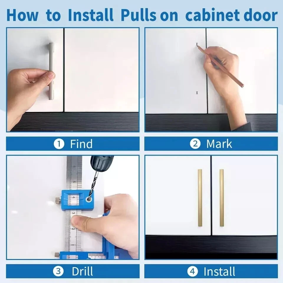 ⭐【Professional Point Wood Dril & Partner 】- Cabinet hardware jig set comes with 3 different sizes of Point Wood Dril, 3mm/4mm/5mm respectively, meeting different installation requirements. Pro-woodworking tools are more durable, Top with pointed tip ,won't jitter. Indispensable accessory to install knob/handle/pull. ⭐【Metric + Imperial Scale】- Contains metric imperial sizes. Super high-definition tick board marks made of ABS, and the ruler is made from stainless steel. Ensure the jig’s premium durability, high corrosion resistance, high strength. ⭐【Detachable & Portable】- Cabinet hardware installation template quick-release '' drill guide'' sliders can be split into small parts by taking a small Space to easily carry. The storage bag we present will solve all your troubles of carrying. ⭐【Time Saver Quick Drilling】- Cabinet hardware template tool a full day of measuring and re-measuring. Set it up once and use it repeatedly with no further measurements, A good accessory, and helper for woodwork or DIY. The installation efficiency is greatly improved. ⭐【Jig Widely Application】- Cabinet hardware jig is ideal for installing pulls or handles and knobs on DRAWERS, CABINETS, DOOR and so on. Works on any cabinet door stile and rails including shaker doors & recessed drawer fronts. We offer 24-hour after-sales customer service, Feel free to contact us if you have any questions