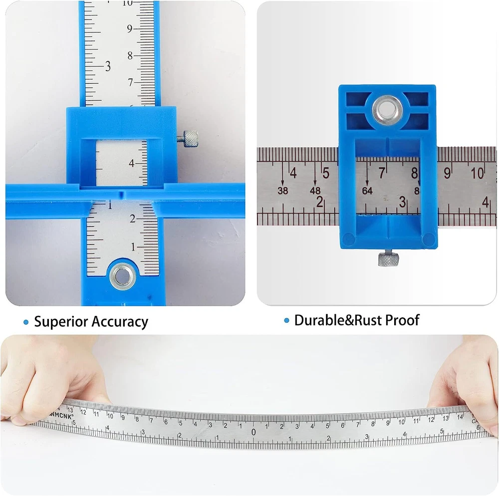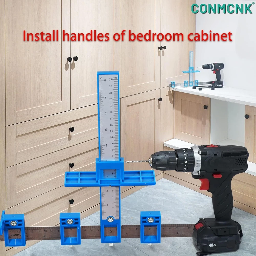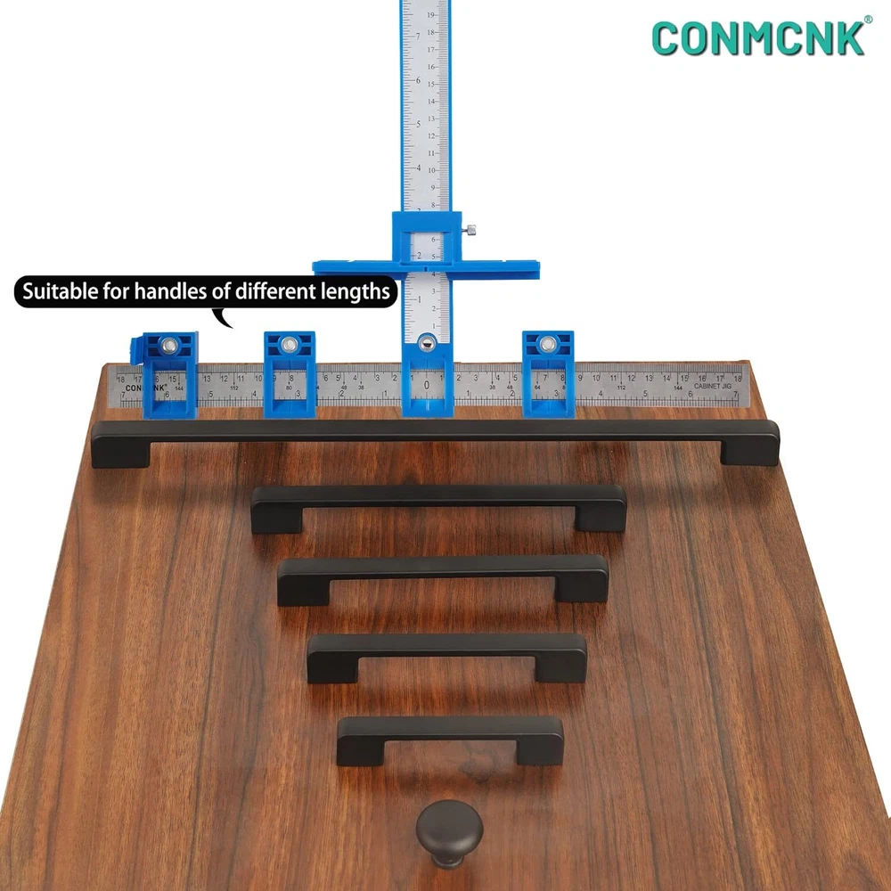 【Money saving】 When you relocate or buy new furniture, it will cost a lot to ask professionist to install the handles. Alternatively you can buy this template for cabinet handles and install the handles all by yourself, which is economical and enjoyable. 【High Precision and Durability】Premium quality cabinet handle guide made of stainless steel and ABS plastic, durable and sturdy.High precision scale cabinet jig makes the drilling more accurate, meet various needs,save time and effort. 【Economical and fast operation】 If you are a professional carpenter, you shall install handles for clients frequently. Please purchase our template for cabinet handles, with which you could be much more time efficient. The dismountable cabinet jig is very cheap and portable. 【Wide application】 You could adopt this cabinet handle guide for handles and drawers in kitchen, bedroom and study room! Wide application. 【Reliable quality】 CONMCNK cabinet knobs template, although cheap, is reliable and very durable! Our company is a professional manufacturer of tools! We are confident in the quality of this cabinet door handles. We promise that you can return it unconditionally! Product Description CONMCNK CABINET JIG PREPARE THIS EFFICIENT CABINET JIG BEFORE HANDLE INSTALLATION When a house is being decorated, maybe dozens of cabinets and drawers need to be installed with handles. The handles’ positions need to be accurate, otherwise they will spoil the appearance of the furniture. During the installation, if the positioning of the hole is not accurate, we could do nothing to recover but replace the whole drawer and cabinet door, which is a waste of money and time. By using our cabinet jig, you could be very efficient and precise. OUR CABINET JIG IS APPLICABLE FOR THE BELOW HANDLES MODERN CONCISE STYLE HANDLES During installation, according to the center to center marked on the package box for handles, you could locate in a very short time by using the sliding block of the cabinet hardware jig. Or you could measure yourself if there is no specific information on the package box. METAL HANDLE Two important parameters for handles: overall length of the handle and distance of center to center. You have to pay close attention to the latter. DIFFERENT HANDLES The common centers to centers are as follows: Ft:2.5inch, 3inch, 3.5inch, 3.75inch, 4inch, 4.5inch, 5inch, 6.25inch, 7.5inch, 8inch, 8.8inch, 10inch, 12.6inch, 18inch Metric:64mm, 76mm, 90mm, 96mm, 102mm, 115mm, 128mm, 160mm, 192mm, 204mm, 224mm, 254mm, 320mm, 457mm STANDARD INSTALLATION OF HANDLES FOR CABINETS SEVERAL THINGS YOU HAVE TO PAY ATTENTION TO DURING INSTALLATION OF HANDLES: 1.The handles have to be installed in the center of the drawer panel; 2.The handles of the top and bottom drawers need to be aligned vertically; 3.The left and right handles for cabinet doors need to be symmetric; 4.The handles for cabinet doors need to be aligned horizontally. PRODUCT DETAILS Made of premium stainless steel and ABS plastic, this cabinet hardware jig is durable, sturdy, rust-proof that will suitable for a wet environment for long-time use. Definitely an essential tool for your work and life! The high-precision cabinet template tool makes drilling more accurate, which meets various daily and work needs, helping save time and energy. It is convenient for you to assemble and process parts . With a thoughtful and user-friendly drill-location design, you can install the handle, drawer, cabinet door, and other parts easily and quickly. Specially designed for punching holes with a diameter of 5mm. Specification: 1. Material: stainless steel, ABS plastic 2. Color: Black 3. Net Weight: 13 ounces 4. Dimension: 17.09 x 2.68 x 2.68 inches Package Information: 1 x cabinet hardware jig Multifunctional Cabinet Hardware Template Tool Enjoy Fast & Accurate Installation! Tired of distorted hole positions and time-consuming installation? It’s time to get yourself a set of adjustable drill guide. CONMCNK is a professional company that focuses on creating gorgeous cabinet hardware jig for more than 10 years. We use top-quality material and thoughtful design to create premium products for all people. You can never go wrong with. Adjustable Accurate Fast & Easy to Use Compact Portable An essential for your life&work!