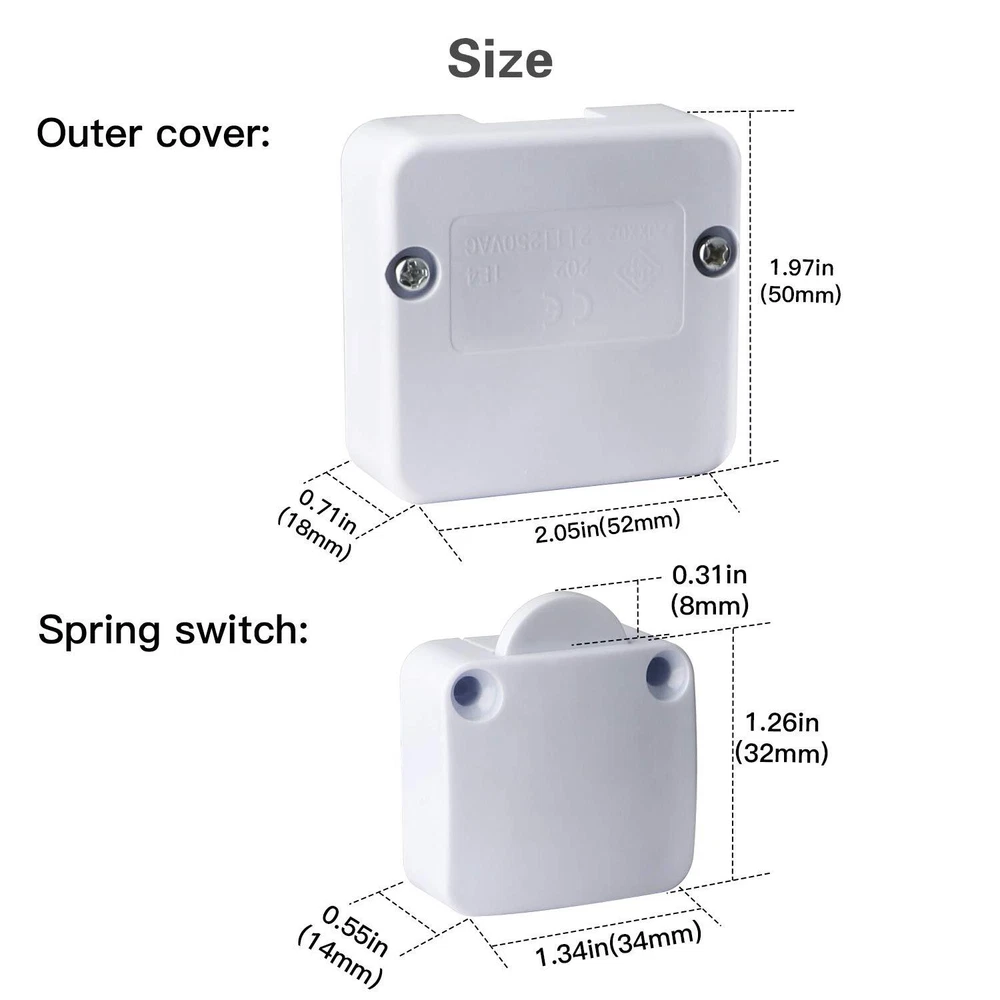 Cabinet Lamp Switch, 2 Pack Wardrobe Touch White Switches, Normally Closed Wardrobe Touch Switch, for Close Open Door Drawers On Off Light Switch (Pack of 2-White) Material: The cabinet lamp switch is made of PC Flame Retardant, ensure the reliability and durability of the switch. Size: 52x50x18mm/2.05x1.97x0.71in.Maximum current: 2A. Maximum voltage: 250V. Design: The exterior is a white plastic cap , and the interior is a scroll switch design. The wardrobe touch switch is equipped with a cord grips and screws for better fixing. Working principle: When the door or window is open, if the switch is not pressed, the light will be on; when the door or window is closed, the switch is pressed and the light will be off.Specific installation method, please see the 5th picture. Application: Used in various lighting fixtures with power cord control wardrobe door, cupboard doors, sliding doors, hotel wardrobe, cupboards etc. ❆Cabinet Lamp Switch Product Description:❆ When the door or window is open, the contact will give an open signal, light on and when the door is closed the contact will give a closed (circuit) signal, light off. Specific installation method, please see the 5th picture. Used in various lighting fixtures with power cord control wardrobe door, cupboard doors, sliding doors, hotel wardrobe, cupboards etc. ❆Specification:❆ Product Name: Cabinet Lamp Switch. Material: PC Flame Retardant Maximum current: 2A Maximum voltage: 250V Size:52x50x18mm/2.05x1.97x0.71in Package Contents:❆ 2 x Cabinet Lamp Switch 2 x Plastic Caps 2 x Cord Grips 8 x Screws ❆After-sale: ❆ The cabinet lamp switch is backed by our unlimited 2-year warranty, please email us for fast replacements or refunds if there has any product issue. SHIPPING - We offer FREE shipping on all orders! - We ship within 3 business days of payment, usually sooner - We use a selection of shipping services such as UPS, FedEx, USPS etc - We only ship to the lower 48 states, no APO/FPO addresses or PO Boxes allowed International buyers – please note: Import duties, taxes, and charges aren't included in the item price or postage cost. These charges are the buyer's responsibility. - Please check with your country's customs office to determine what these additional costs will be prior to bidding or buying. - We have confidence in our products, but if you are not fully satisfied please contact us within 30 days of purchase and you will get full refund. * Order Cancellation Policy ** You can return a product for up to 30 days from the date you purchased it. 1. The seller reserves the right to cancel the special case only due to eBay cancellation fee. 2. The decision of seller is the final. 3. The seller will respond to the cancellation request within 2 business days. Please wait for the result of cancellation. 4. In case the cancellation is not completed by some reasons, the buyer can follow the options below to get the refund. 4.1 The buyer can reject the item when it arrives. 4.2 The buyer can send the item back to the seller within 30 days If the buyer receives item (USA Shipment ONLY). The seller will provide the FREE return label to the buyer when the buyer opens " Return Item" case on eBay by using the reason as "Change my mind" ONLY. 5. When buyer has placed the order. The order will be processed and completed by automatic warehouse system within 5 minutes. In case that buyer sends the cancellation request after 5 minutes of placing the order, the request will be rejected. **Sending direct message to cancel the order is not allowed for every case.* Return Policy For the return case - If buyer would like to return the items for refund or replacement, please CONTACT SELLER to receive the free return label from seller. The refund or replacement will be processed with the tracking number of return label which is provided by seller only. The other ways of return which are not approved by seller will not be processed for the refund or replacement. CUSTOMER SERVICE - We try our best to make sure every customer is completely satisfied. - If there's a problem, feel free to message us! - We're happy to help.
