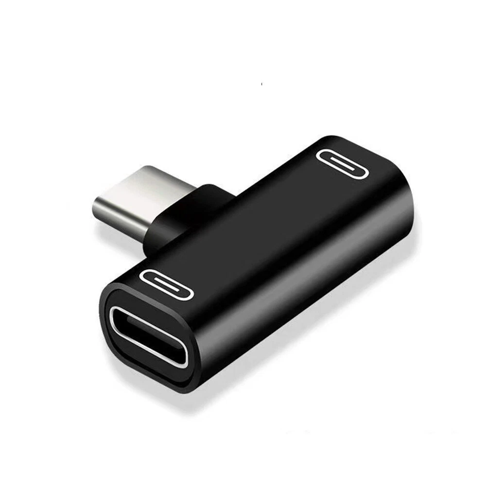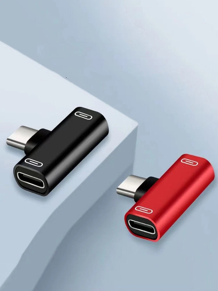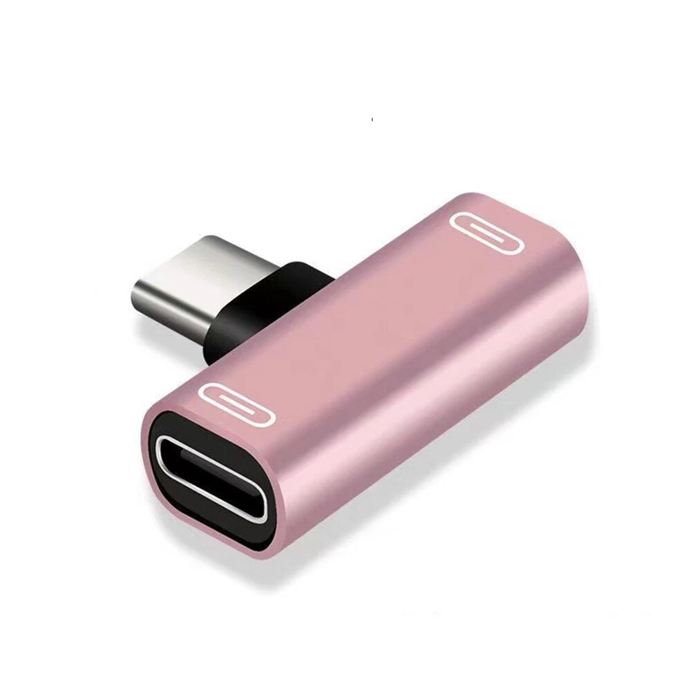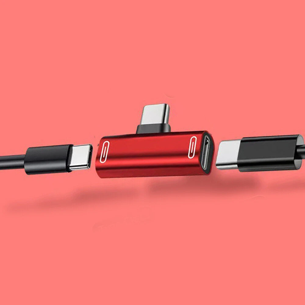 Specification: Color: Black/Pink/Red/Gold/Silver Functions and Features: 1) The dual adapter is very small,lightweight and compact,you can put it in your bag or pocket and enjoy your favorite music with your phone at anytime and anywhere. 2) This product allows you to simultaneously use your splitter headphone and charging your device.Analog headphones are only available Digital headphones cannot be used. 3) At the same times, unique 90°design let you play games or watch movies without any influence. It saves spaces and easy to use.This gives you nondestructive digital sound quality and stability of the transmission. 4) Connector A: Type-C Male; Connector B: Type-C Female * 2 Package included: 2 in 1 USB C Splitter Adapter X1