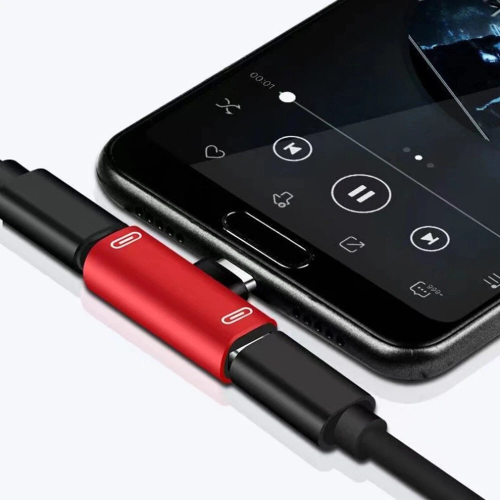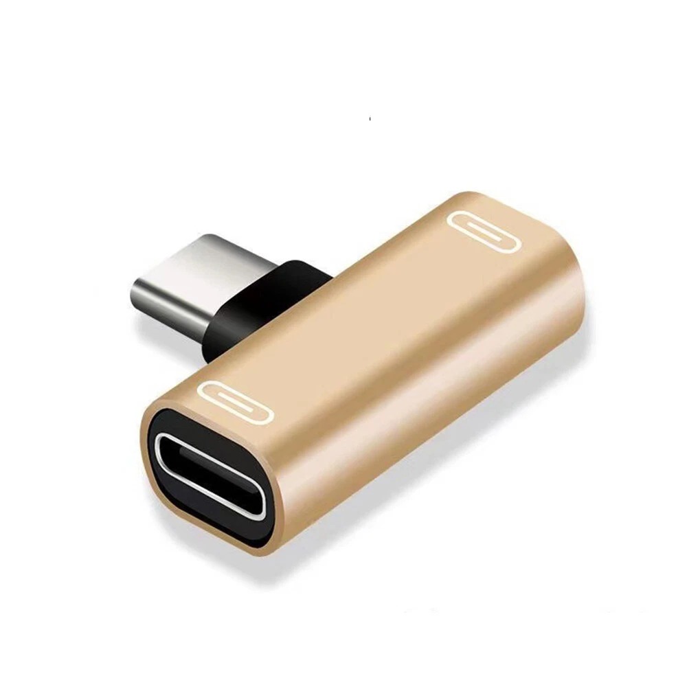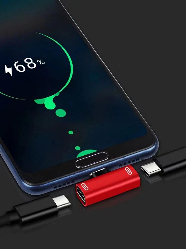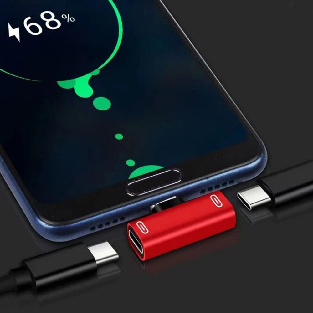 Specification: Color: Black/Pink/Red/Gold/Silver Functions and Features: 1) The dual adapter is very small,lightweight and compact,you can put it in your bag or pocket and enjoy your favorite music with your phone at anytime and anywhere. 2) This product allows you to simultaneously use your splitter headphone and charging your device.Analog headphones are only available Digital headphones cannot be used. 3) At the same times, unique 90°design let you play games or watch movies without any influence. It saves spaces and easy to use.This gives you nondestructive digital sound quality and stability of the transmission. 4) Connector A: Type-C Male; Connector B: Type-C Female * 2 Package included: 2 in 1 USB C Splitter Adapter X1