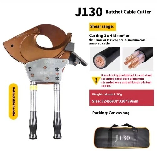Cable Special Scissors Copper Aluminum Armored Wire Cutting Pliers Industrial Grade J100 Ratchet Cable Cutter Cutting range. Cutting 3X300mm2 or 100mm in the following copper-aluminum core armored cable Strictly prohibited to cut steel stranded steel core aluminum stranded wire and a variety of steel cable Weight: about 6.5Kg Size: 482(655)*270*59mm Packing: canvas bag eBay
