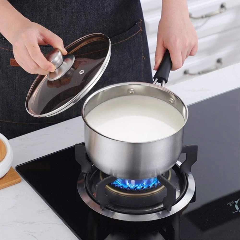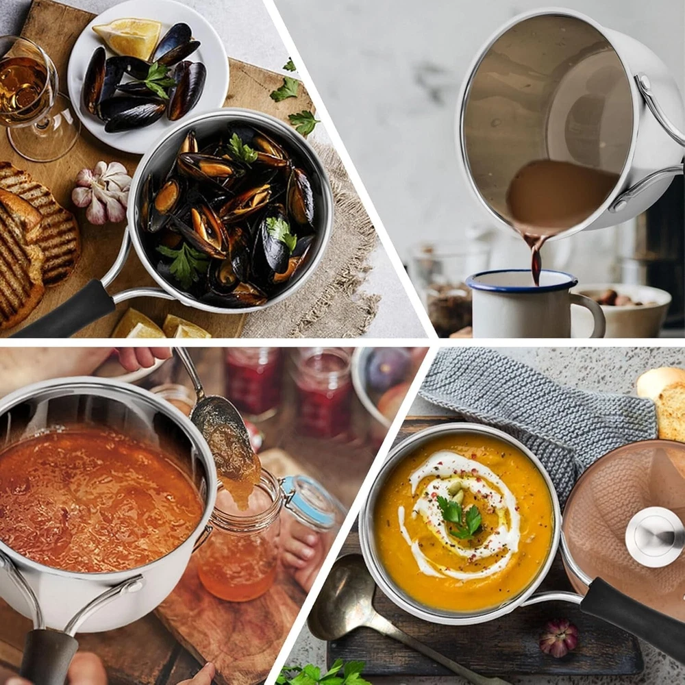 Cacerola De 2 Cuartos Con Tapa Coleccion Utensilios De Cocina Color Astilla NEW. 【Material de primera calidad】La cacerola de 2 qt está hecha de acero inoxidable 18/10 puro y saludable sin revestimiento químico tóxico, no reacciona con los alimentos para alterar los sabores naturales, saludable para su uso diario en la cocina 【Artesanía exquisita】Mango firmemente remachado al cuerpo para un agarre equilibrado, manijas de baquelita y un gran orificio en el extremo del mango para un almacenamiento resistente al calor y fácil de colgar, la superficie cepillada está diseñada para lucir elegante en la cocina y limpiarse fácilmente, apto para lavavajillas y refrigerador 【Cocción visible】La tapa está hecha de vidrio templado de primera calidad que ayuda a cocinar comidas saludables fácilmente y para una cocción visible, bloquea el sabor, el calor y la humedad de los alimentos, un orificio de alivio en la tapa libera el exceso de vapor para reducir el derrame de agua y mantener la estufa limpia 【Calienta de manera uniforme】La cacerola de acero inoxidable transfiere el calor de manera rápida y uniforme, la tapa ajustada en la cacerola aceleraría la cocción para ahorrar tiempo y energía de cocción, nuestra cacerola podría funcionar en estufas de gas y eléctricas, estufas de cerámica, PERO no es compatible con Horno e inducción 【Multiusos】La cacerola de 2 cuartos es suficiente para preparar comida para 2 o 3 personas. Disfrute de una cocina más saludable y deshágase del aluminio y los tóxicos. Eficiente para usos múltiples diarios en la cocina del hogar, como calentar leche, hervir huevos, cocinar fideos, pasta o sopa.