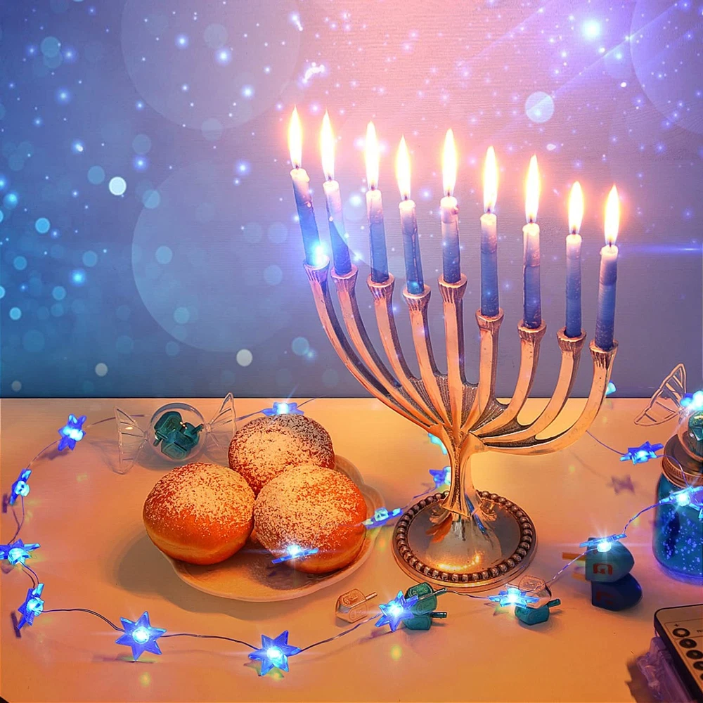 Rocinha Hanukkah Decorations Star of David Lights String, 10 ft 30 LEDs Judaical Style Chanukah Lights Decorations for Jewish Judaism, Decor Passover/Hashanah/Shabbat/Rosh Hashana (Blue) ★EASILY USE & 8 LIGHTING MODES FOR CHOICE: Each click the power button of the battery box turn to the lighting mode described on the surface of the battery box. You can also remote control turn to the lighting mode. 8 lighting modes for choice. ★SAFETY USE & HANUKKAH LIGHT DECOR: During the lighting, the copper wire will never go hot and be safe. The battery box needs 3 AA batteries for the power supply. Hanukkah light string will create a Jewish style in indoor or covered outdoor. ★GIVE YOU A UNIQUE ART FOR CHANUKAH DECORATIONS: The Jewish light string like the unique arts for using to decorate the space and let the place more and more wonderful! (Package no include AA batteries) ★ABOUT CHANUKAH LIGHT STRING: The Chanukah festival light consist of 9.7 ft silver-plated copper wire & 30 pcs 1.18''x 1.18'' LED hexagram. The copper wire is long-lasting & meets IP64 waterproof. (Battery box is not waterproof.) ★THE BEST HANUKKAH GIFT: It's the best gift for kids, friends, and families in Hanukkah, Passover, Hashanah, Shabbat. The Star of David string lights with winter snowflake elements makes its unique beauty. Shipping We offer FREE shipping on all orders! We ship within Three business days of payment, usually sooner. We use a selection of shipping services such as UPS, FedEx, USPS etc. We only ship to the lower 48 states, no APO/FPO addresses or PO Boxes allowed. Local pickups and combined shipping options are not provided at this time. Return You can return a product for up to 30 days from the date you purchased it. Any product you return must be in the same condition you received it and in the original packaging. Please keep the receipt. Payment We accept payment by any of the following methods: PayPal Please pay as soon as possible after winning an auction, as that will allow us to post your item to you sooner! Feedback Customer satisfaction is very important to us. If you have any problem with your order, please contact us and we will do our best to make you satisfied. Contact Us If you have any queries, please contact us via ebay. We usually respond within 24 hours on weekdays. Please visit our eBay store to check out other items for sale! Thank you for shopping at our store.