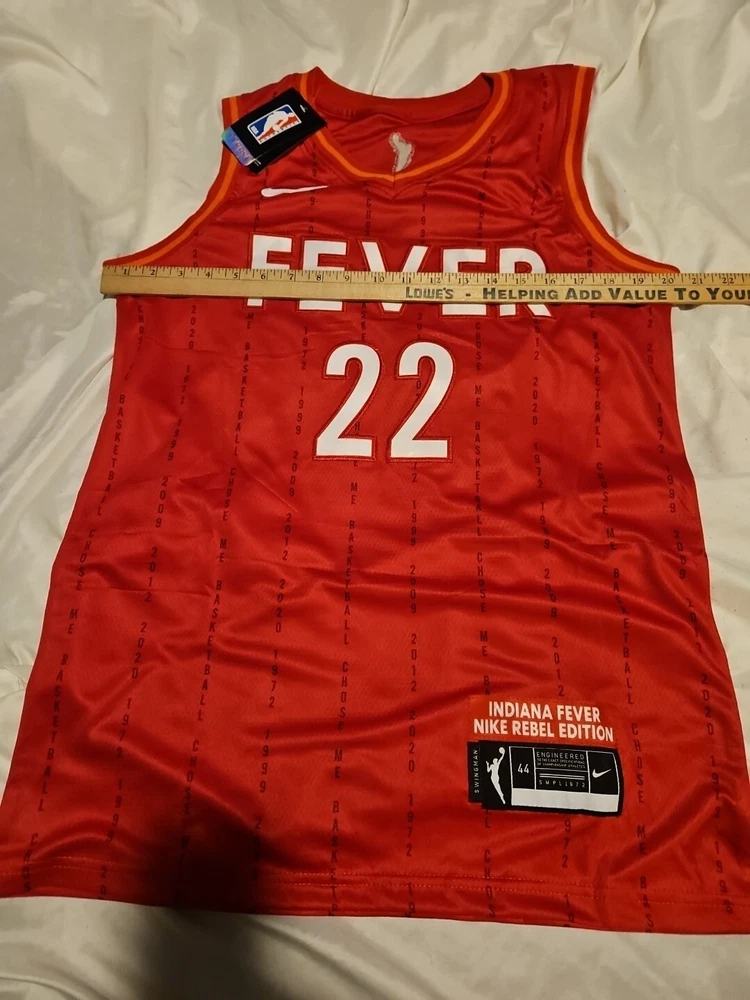 Show your support for the Indiana Fever with this beautiful Caitlin Clark jersey. Perfect for any basketball fan, this unisex adult jersey is a must-have for the regular season. The vibrant red color and stitched details make it a standout piece of fan apparel. Whether you're cheering on the team from the stands or watching from home, this jersey is sure to make you feel like a part of the action. It's available in adult size 44/small and is made from high-quality materials to ensure durability and comfort. Get your hands on this Women's National Basketball Association (WNBA) jersey with Fast shipping!