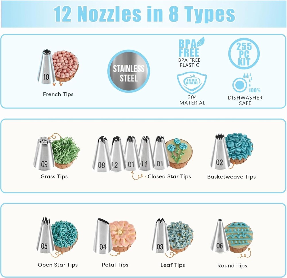 Cake Decorating Supplies Kit Tools 255pcs, Cake Decorating Set with Cake Turntab
