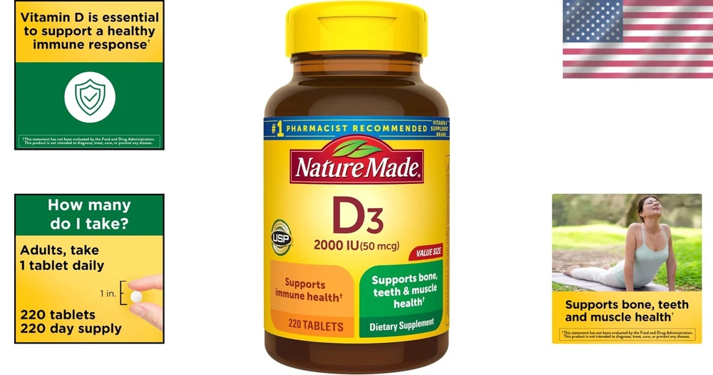 Calcium Absorption Support - 220 Tablets of Vitamin D3 2000 IU for Daily Use ‹ › ‹ › ‹ › ‹ › ‹ › ‹ › ‹ › ‹ › ‹ › ‹ › Calcium Absorption Support - Vitamin D3 2000 IU Enhance your daily wellness routine with our Calcium Absorption Support supplement, featuring 220 Tablets of Vitamin D3 (2000 IU) . This product is designed to fortify your immune system, support muscle function, and promote healthy bones and teeth. Key Features: Each bottle contains 220 tablets for a 220-day supply . Provides 2000 IU (50 mcg) of Vitamin D3, the body’s preferred form of Vitamin D. Helps improve calcium absorption crucial for maintaining bone health. Supports immune, muscle, teeth , and overall health. Gluten-free with no color added and no artificial flavors. United States Pharmacopeia (USP) Verified for quality assurance. Benefits: Support strong bones and teeth for enhanced dental health. Promote muscle function and overall vitality. Boost your overall immune response for better health resilience. Easy daily intake — take just once with water and a meal. Trusted product endorsed by pharmacists — the #1 recommended vitamin & supplement brand . Why Choose Our Vitamin D3 Supplement? Vitamin D deficiency is common, and ensuring sufficient levels is essential for optimal health. Our Vitamin D3 2000 IU tablets offer a convenient way to bolster your body with the nutrients it craves. These tablets are crafted from premium ingredients, ensuring you receive a quality supplement that aligns with your healthy lifestyle. Elevate your daily supplement regimen and experience the difference with our Calcium Absorption Support. Order your bottle today and take the first step towards a healthier you! Shipping Free & Fast Shipping - We offer free shipping to most of the USA with a normal delivery time of 3-7 days. However, due to the current situation, additional delivery time (up to 3 weeks) may be required for some items. Alternative Carriers - We may use alternative carriers (e.g. USPS, FedEx, UPS, etc.) to ensure your package arrives safely and on time. Due to the use of multiple carriers, we are unable to provide a tracking number automatically. Handling Time - Orders are processed and shipped within 1-2 business days of receiving cleared payment. Shipping Restrictions - Shipping to Alaska, Hawaii, Puerto Rico, Guam, and other US territories may incur shipping charges or delivery restrictions. Please contact us before ordering, or your order can be refunded/cancelled. State Restrictions - There may be restrictions based on your state of purchase. For example, certain items may not be shipped to California due to state regulations. Contact for Tracking Updates - If you require tracking updates or have any concerns about the delivery of your order, please feel free to contact us, and we will be happy to assist you. Return 30-Day Hassle-Free Returns - We want you to be completely satisfied with your purchase. If you are not, you can return the item within 30 days of receiving it for a full refund or exchange. Easy Return Process - To start a return, simply contact us and we will provide you with a prepaid return shipping label and detailed instructions. Restocking Fee - There are no restocking fees for returns. However, the buyer is responsible for return shipping costs if the return is not due to a seller's error. Refund Processing Time - Refunds will be processed within 5 business days of receiving the returned item in its original condition. Payment We accept all major credit cards, PayPal, and Apple Pay for your convenience. Your payment information is secure and encrypted to ensure a safe and seamless transaction. Please complete your payment within 3 days of purchase to avoid any delays in shipping. Feedback Your feedback is extremely important to us. We strive to provide the best products and customer service possible. If you are satisfied with your purchase, please take a moment to leave us a positive review. If you have any concerns or issues with your order, please contact us before leaving negative feedback. We are committed to resolving any problems and ensuring your satisfaction. Contact Us If you have any questions or concerns, please feel free to reach out to our customer support team. You can contact us through the eBay messaging system. We are available Monday to Friday, 9:00 am to 5:00 pm EST, and we will do our best to respond to your inquiry within 24 hours. Buy it now and enjoy a pleasant shopping experience! UPC: Not Set Expiration Date: Not Specified Unit Quantity: 220 Active Ingredients: Vitamin D3 Formulation: Tablet Features: Gluten-Free,No Artificial Flavors,No Color Added Main Purpose: Immune Support,Muscle Health,Bone Health,Teeth Health Ingredients: Vitamin D3 Department: Adult When to Take: With Meal Brand: Unbranded Type: Vitamin MPN: Not Set Number of Pills: 220 Dosage: 50 mcg Country/Region of Manufacture: Not Set Flavor: No Artificial Flavors Item Weight: 2.88 oz Volume: Not Specified Unit Type: oz