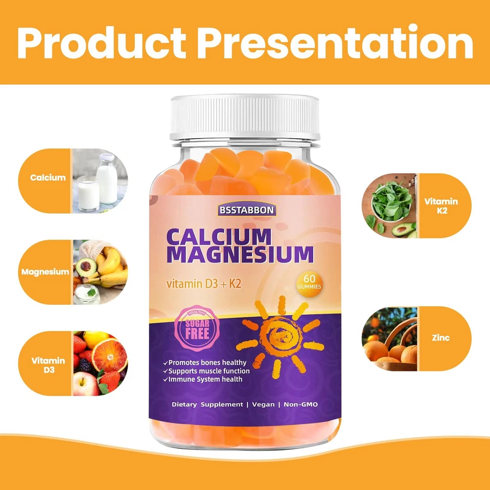 Calcium Magnesium Gummies for Adult: with Zinc Vitamin D3 K2 for Women Men Organic Sugar Free Vegan Chewable Gummy - High Absorption for Immune Strength(60count Multi-in-One Natural Formula Supplement:calcium, magnesium, and zinc supplement is a perfect blend of high potency and high absorption, containing 600mg of calcium citrate, 420mg of magnesium complex, 5mg of zinc, as well as vitamins D3 and K2, providing comprehensive nutritional support for the body. Perfect Combination of Calcium, Magnesium, Vitamin D3+K2 Supplements:Calcium and magnesium are vital elements in the human body. Calcium and magnesium play a huge role in supporting healthy bone density and nervous system function; Magnesium is beneficial for relaxation and maintaining calmness, helps regulate the transport of nutrients, supports immune system function, promotes collagen synthesis in bone tissue, and also helps maintain normal metabolisms. Powerful Supplement:As essential minerals for the human body, calcium, magnesium and zinc play a huge role in promoting the growth of the human body.Our supplement not only promotes calcium absorption but also helps maintain a healthy immune system, converting food into energy to support daily activities and bodily recovery. Each bottle contains 60 gummies, enough for 30 days.Eat two gummies a day for best results. Natural Orange Flavor:Swallowing capsules or pills is not an easy task for many people, but the natural orange flavor of calcium and magnesium gummy which not only makes it easier for us to swallow, but also easier to promote the absorption of nutrients.Our vegan supplement is a healthy and eco-friendly choice, made with natural, organic, non-GMO ingredients, sugar-free, gluten-free, and free from artificial flavors and preservatives, suitable for all consumers pursuing a healthy lifestyle. Naturally Sourced and Vegan:Our magnesium and calcium gummies are sugar-free, vegan, non-GMO, and made without any artificial flavors, colors, or sweeteners. They are suitable for vegetarians and vegans, and are free from common allergens such as starch, soy, yeast, wheat, and eggs, ensuring purity and safety.These statements have not been evaluated by the Food and Drug Administration; this product is not intended to diagnose, treat, cure, or prevent any disease Shipping We offer FREE shipping on all orders! We ship within Three business days of payment, usually sooner. We use a selection of shipping services such as UPS, FedEx, USPS etc. We only ship to the lower 48 states, no APO/FPO addresses or PO Boxes allowed. Local pickups and combined shipping options are not provided at this time. Return You can return a product for up to 30 days from the date you purchased it. Any product you return must be in the same condition you received it and in the original packaging. Please keep the receipt. Payment We accept payment by any of the following methods: PayPal Please pay as soon as possible after winning an auction, as that will allow us to post your item to you sooner! Feedback Customer satisfaction is very important to us. If you have any problem with your order, please contact us and we will do our best to make you satisfied. Contact Us If you have any queries, please contact us via ebay. We usually respond within 24 hours on weekdays. Please visit our eBay store to check out other items for sale! Thank you for shopping at our store.