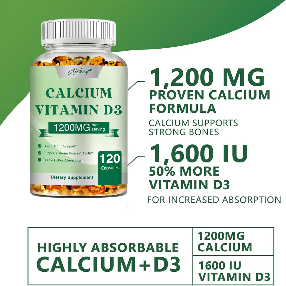Effects: Immune Support,Muscle Health Ingredients: Calcium,Vitamin D3 Directions: Take 2 capsules once daily after a meal. Shipping: Ships within 48 hours on working days. Shelf life: 2 years Description: Bone & Teeth Support: Our potent calcium carbonate formula supports strong bones and teeth health. Immune Support: Fortified with Vitamin D3, our calcium and vitamin D supplement provides potent bone and immune support. Free of gluten, wheat, yeast, milk, lactose, flavors and non-GMO. Document