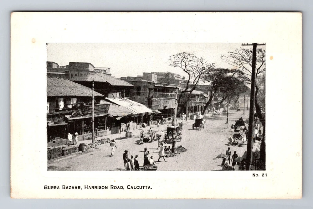 Calcutta India, Burra Bazaar, Harrison Road, Antique, Vintage Postcard