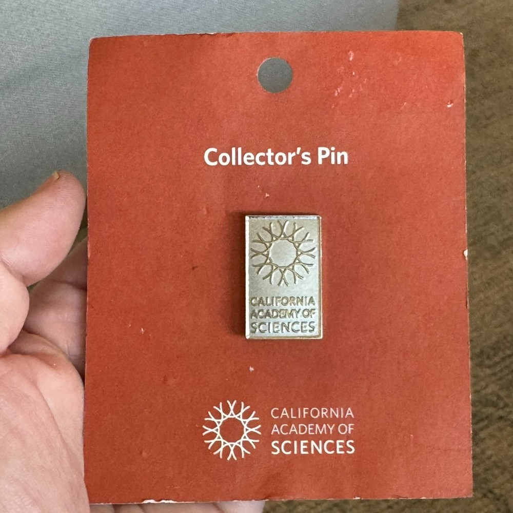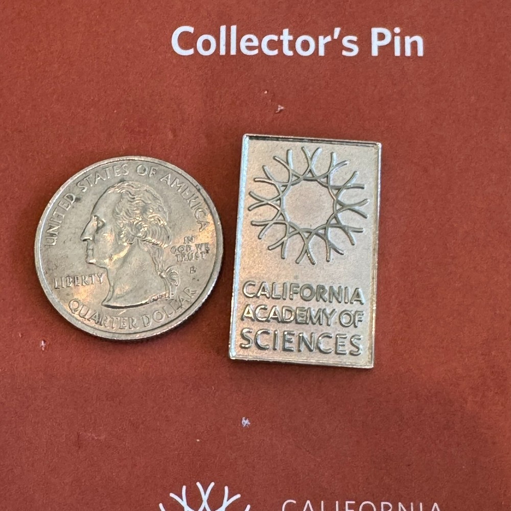 The "California Academy of Sciences Lapel Pin Souvenir" is a collectible pinback featuring the emblem of the California Academy of Sciences. This pin is a souvenir item that can be worn on clothing or accessories to show support for the academy.