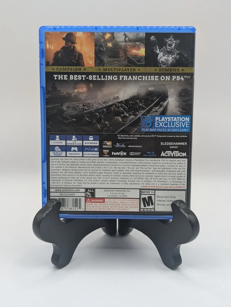 Rating:M - MatureMPN:NARegion Code:Region FreePlatform:Sony PlayStation 4UPC:047875881082Country/Region of Manufacture:United StatesFeatures:Complete Edition, Multiplayer, Online Playability, PS4 Pro EnhancedVideo Game Series:Call of Dutygtin13:047875881082Release Year:2017Game Name:Call of Duty: WWIIPublisher:Activision ClassicsGenre:Action & Adventure, Shooter, WarSub-Genre:Action & Adventure, Call of Duty, First Person Shooter, WWII