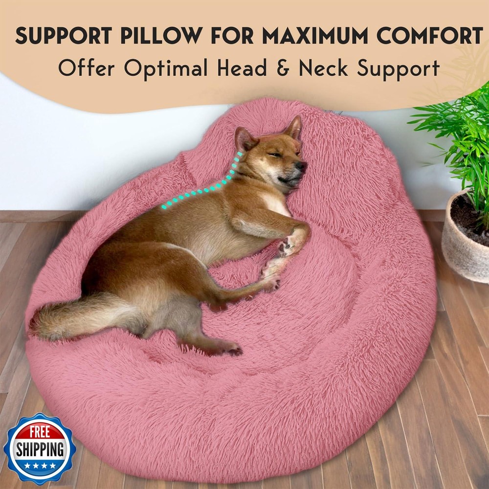 PetJett Calming Medium Dog Bed - 30'' Round Dog Beds, Anti-Slip and Washable Super Soft Fluffy Plush Donut Bed, Anti-Anxiety Premium Comfort Pet Bed, Fits Dogs up to 45 lbs - Pink Features 【Soft and Cozy】 Indulge your furry friend in supreme comfort with our luxury faux fur calming dog bed. This eco-friendly furniture being 20% more plush than any other in the market, offers unmatched softness that pets adore, while the super-soft extra cotton filling ensures exceptional support. Designed for ultimate relaxation, the bed provides a warming environment where your pet can rest comfortably. The non-slip PVC dot fabric bottom ensures maximum stability, enhancing safety for your pet. 【Easing Dog Anxiety】Our donut dog bed design is perfect for pets who love to curl up. Featuring an 8’’ raised rim, our pet bed provides optimal support, creating a secure environment. The round shape, mimicking a pet mom’s embrace, alleviates muscle and joint pain, making it ideal for cuddling and burrowing. Made with high-quality, pet-safe materials, it forms a warm, fluffy, calming space that is anti-anxiety and promotes deep, restful sleep. 【Support Pillow for Maximum Comfort】 Our uniquely designed support pillow for dog beds—small, medium, and large sized dogs—is crafted with precision, offering unparalleled head and neck support. This ensures your furry friend experiences optimal relaxation and relief during rest and sleep. With its plush and fluffy design, it guarantees incomparable comfort, providing your pet with the utmost serenity they deserve. This pillow is the perfect blend of comfort and coziness! 【Choose the Perfect Size】Our round dog bed comes in 3 sizes tailored to your pet's needs. Select the Small size (23’’x23’’x8’’) for dogs up to 25 lbs, the Medium (30’’x30’’x8’’) for up to 45 lbs, and the Large (36’’x36’’x10’’) for dogs up to 100 lbs. Ensure your pet's ultimate comfort and calmness with the ideal size for their breed and weight. If uncertain about the size, choose one size larger to ensure added comfort. It comes in 4 cute colors pink, grey, beige, and dark grey. 【Easy to Clean】Keep your pet bed looking and smelling fresh with our large, durable dog t bed. It is completely machine and hand-washable. simply toss the entire bed into the washer. Safe for both washer and dryer, you can choose to hand wash or machine wash on a gentle cycle, followed by tumble dry on low heat for convenient and hassle-free maintenance. Shipping Free & Fast Shipping: We offer free shipping to most of the USA with a normal delivery time of 3-7 days. However, due to the current situation, additional delivery time (up to 3 weeks) may be required for some items. Alternative Carriers: We may use alternative carriers (e.g., USPS, FedEx, UPS) to ensure your package arrives safely and on time. Due to the use of multiple carriers, we are unable to provide a tracking number automatically. Handling Time: Orders are processed and shipped within 1-2 business days of receiving cleared payment. Shipping Restrictions: Shipping to Alaska, Hawaii, Puerto Rico, Guam, and other US territories may incur shipping charges or delivery restrictions. Please contact us before ordering, or your order can be refunded/cancelled. State Restrictions: Certain items may not be shipped to California due to state regulations. Contact for Tracking Updates: If you require tracking updates or have any concerns about the delivery of your order, please feel free to contact us, and we will be happy to assist you. Return Policy 30-Day Hassle-Free Returns: If you are not completely satisfied with your purchase, you can return the item for free within 30 days of receiving it for a full refund or exchange. Easy Return Process: Contact us, and we will provide you with a prepaid return shipping label and detailed instructions. No Restocking Fee: There are no restocking fees for returns. However, the buyer is responsible for return shipping costs if the return is not due to a seller"s error. Refund Processing: Refunds will be processed within 1 business day of receiving the returned item in its original condition. Feedback Your feedback is extremely important to us. We strive to provide the best products and customer service possible. If you are satisfied with your purchase, please take a moment to leave us a positive review. If you have any concerns or issues with your order, please contact us before leaving negative feedback. We are committed to resolving any problems and ensuring your satisfaction. Contact Us If you have any questions or concerns, please feel free to reach out to our customer support team. You can contact us through the eBay messaging system. We are available Monday to Friday, 9:00 am to 5:00 pm EST, and we will do our best to respond to your inquiry within 24 hours. Thank you for supporting our small family business!