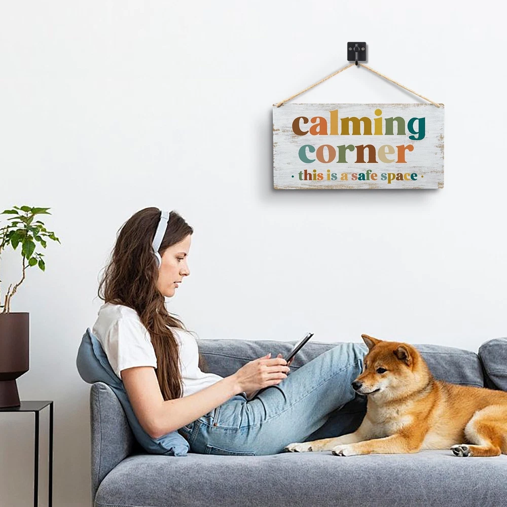 Calming Corner Hanging Wood Sign Plaque - Safe Space Classroom Decor, School Counselor Office Decor, Calm Down Corner Decorations For Classroom Preschool, Boho Classroom Decor(Yellowish White), 12x6 Product Details Color: 010-Calming Corner sign Brand: Absnfatu MPN: 380 UPC: Does not apply EAN: Does not apply Color: 010-Calming Corner sign Brand: Absnfatu Product Dimensions: 12"L x 6"W Shape: Rectangular Style: Modern Product Dimensions: 12 x 6 x 0.04 inches Item Weight: 3.87 ounces Item model number: 380 1. Elevate your home decor with our captivating wooden plaque signs,10x8 inch, featuring vibrant designs that will instantly brighten up any space. 2. Crafted for durability and elegance, our wooden plaques are the perfect choice to add a touch of color and charm to your surroundings. 3. Make special occasions even more memorable with our wooden plaque signs, the ideal gift choice for those who appreciate meaningful and beautiful decor. 5. Add a pop of color and style to your surroundings with our wooden plaque signs, designed to bring joy and charm to your home or office space. Our wooden plaque signs offer a perfect blend of captivating designs, vibrant colors, and durability, making them a versatile and timeless decoration choice for any home or office setting.