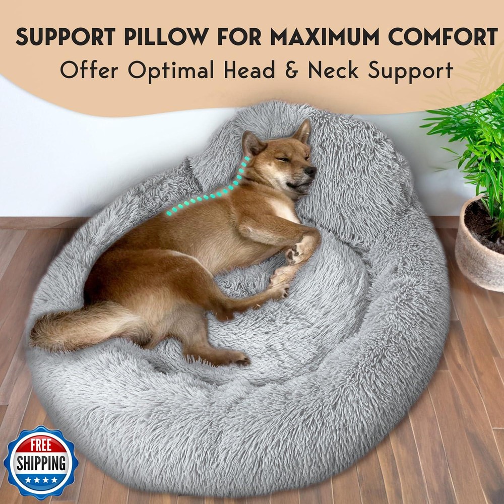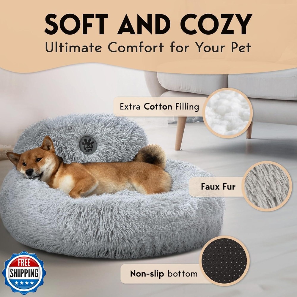 PetJett Calming Dog Bed Medium Size Dog - 30'' Donut Bed, Anti-Slip and Washable Super Soft Fluffy Plush Round Bed, Anti-Anxiety Premium Comfort Pet Bed, Fits Dogs up to 45 lbs - Bright Grey Features 【Soft and Cozy】 Indulge your furry friend in supreme comfort with our luxury faux fur calming dog bed. This eco-friendly furniture being 20% more plush than any other in the market, offers unmatched softness that pets adore, while the super-soft extra cotton filling ensures exceptional support. Designed for ultimate relaxation, the bed provides a warming environment where your pet can rest comfortably. The non-slip PVC dot fabric bottom ensures maximum stability, enhancing safety for your pet. 【Easing Dog Anxiety】Our donut dog bed design is perfect for pets who love to curl up. Featuring an 8’’ raised rim, our pet bed provides optimal support, creating a secure environment. The round shape, mimicking a pet mom’s embrace, alleviates muscle and joint pain, making it ideal for cuddling and burrowing. Made with high-quality, pet-safe materials, it forms a warm, fluffy, calming space that is anti-anxiety and promotes deep, restful sleep. 【Support Pillow for Maximum Comfort】 Our uniquely designed support pillow for dog beds—small, medium, and large sized dogs—is crafted with precision, offering unparalleled head and neck support. This ensures your furry friend experiences optimal relaxation and relief during rest and sleep. With its plush and fluffy design, it guarantees incomparable comfort, providing your pet with the utmost serenity they deserve. This pillow is the perfect blend of comfort and coziness! 【Choose the Perfect Size】Our round dog bed comes in 3 sizes tailored to your pet's needs. Select the Small size (23’’x23’’x8’’) for dogs up to 25 lbs, the Medium (30’’x30’’x8’’) for up to 45 lbs, and the Large (36’’x36’’x10’’) for dogs up to 100 lbs. Ensure your pet's ultimate comfort and calmness with the ideal size for their breed and weight. If uncertain about the size, choose one size larger to ensure added comfort. It comes in 4 cute colors pink, grey, beige, and dark grey. 【Easy to Clean】Keep your pet bed looking and smelling fresh with our large, durable dog t bed. It is completely machine and hand-washable. simply toss the entire bed into the washer. Safe for both washer and dryer, you can choose to hand wash or machine wash on a gentle cycle, followed by tumble dry on low heat for convenient and hassle-free maintenance. Shipping Free & Fast Shipping: We offer free shipping to most of the USA with a normal delivery time of 3-7 days. However, due to the current situation, additional delivery time (up to 3 weeks) may be required for some items. Alternative Carriers: We may use alternative carriers (e.g., USPS, FedEx, UPS) to ensure your package arrives safely and on time. Due to the use of multiple carriers, we are unable to provide a tracking number automatically. Handling Time: Orders are processed and shipped within 1-2 business days of receiving cleared payment. Shipping Restrictions: Shipping to Alaska, Hawaii, Puerto Rico, Guam, and other US territories may incur shipping charges or delivery restrictions. Please contact us before ordering, or your order can be refunded/cancelled. State Restrictions: Certain items may not be shipped to California due to state regulations. Contact for Tracking Updates: If you require tracking updates or have any concerns about the delivery of your order, please feel free to contact us, and we will be happy to assist you. Return Policy 30-Day Hassle-Free Returns: If you are not completely satisfied with your purchase, you can return the item for free within 30 days of receiving it for a full refund or exchange. Easy Return Process: Contact us, and we will provide you with a prepaid return shipping label and detailed instructions. No Restocking Fee: There are no restocking fees for returns. However, the buyer is responsible for return shipping costs if the return is not due to a seller"s error. Refund Processing: Refunds will be processed within 1 business day of receiving the returned item in its original condition. Feedback Your feedback is extremely important to us. We strive to provide the best products and customer service possible. If you are satisfied with your purchase, please take a moment to leave us a positive review. If you have any concerns or issues with your order, please contact us before leaving negative feedback. We are committed to resolving any problems and ensuring your satisfaction. Contact Us If you have any questions or concerns, please feel free to reach out to our customer support team. You can contact us through the eBay messaging system. We are available Monday to Friday, 9:00 am to 5:00 pm EST, and we will do our best to respond to your inquiry within 24 hours. Thank you for supporting our small family business!