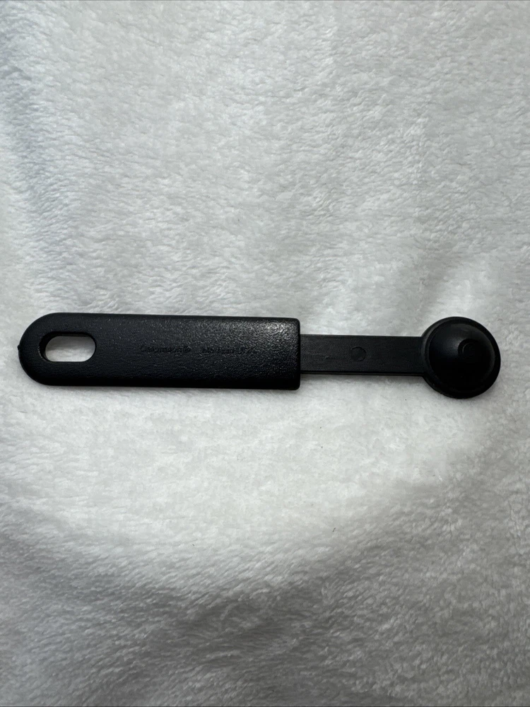 This Calphalon 1/2 TEASPOON measuring spoon is a must-have in any kitchen. It features a solid pattern in black and gray, with a set that includes one spoon. The spoon is made of nylon and silicone, making it heat resistant and easy to clean. The lightweight spoon has a soft grip and is dishwasher safe. Perfect for cooking, this measuring spoon is a great addition to any kitchen tool collection. It is manual in making method and has a unit quantity of one. The spoon's handle is made of silicone and nylon, making it durable and long-lasting. Get accurate measurements for your cooking needs with this Calphalon measuring spoon.
