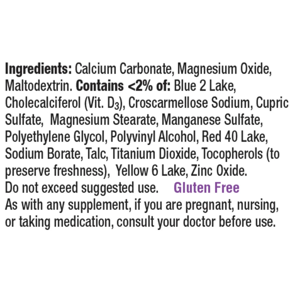 About This Item We aim to show you accurate product information. Manufacturers, suppliers and others provide what you see here, and we have not verified it. Start a delicious routine to support your bone health with Caltrate Calcium and Vitamin D3 Supplement Gummy Bites. A great alternative to taking calcium supplement tablets, Caltrate calcium and vitamin D3 Gummy Bites are a delicious bone health option. (1) If you aren't getting enough calcium from your diet, your body steals it from your bones. And, as you age, your body's ability to maintain healthy collagen lessens. Your bones need calcium to stay strong and healthy so you can enjoy the things you want to do each day like walking or playing tennis. (1) What better way to ensure you're replenishing what you need than with a fruity, chewable calcium supplement, that tastes great too? With three fruit flavors that taste great-black cherry, orange and strawberry-it's easy to add bone health support to your daily routine with Caltrate Calcium and Vitamin D3 Supplement Gummy Bites. (1) Backed by over 25 years of nutritional science research, Caltrate is formulated with consideration given to recommendations from the National Academy of Sciences to support bone and overall health.. (1) So, it's no surprise that Caltrate is the 1 selling calcium supplement brand in the United States and trusted by so many people like you. (2) (1) These statements have not been evaluated by the Food and Drug Administration. These products are not intended to diagnose, treat, cure or prevent any disease. (2) IRI retail sales data supports that Caltrate is the 1 selling calcium supplement brand in the US Each bottle contains 100 Caltrate Calcium and Vitamin D3 Supplement Gummy Bites to help support your bone health. (1) Includes 3 great-tasting fruit flavor gummies: Orange Caltrate gummy, Strawberry Caltrate gummy, and Black Cherry Caltrate gummy. Easy alternative to a calcium tablet, chew a tasty Caltrate gummy calcium and vitamin D supplement. Caltrate gummies contain high levels of vitamin D3 to help maximize calcium absorption. (1) Caltrate is the #1 selling brand of calcium supplements in the United States. (4) Not formulated to use in children under age 13 Indications: Health Concern: Bone Health Bone Strength Warning: Keep out of reach of children. Do not exceed suggested use. As with any supplement, if you are pregnant, nursing, or taking medication, consult your doctor before use. Bottle sealed with printed foil under cap. Do not use if foil is torn. Ingredients: Ingredients: Active Ingredients: Corn Syrup, Sugar, Tribasic Calcium Phosphate, Water. Contains <2% of Annatto Seed Extract (Color), Cholecalciferol (Vit. D3), Citric Acid, Invert Sugar, Natural Flavors, Pectin, Purple Carrot Juice Concentrate (Color), Sodium Citrate, Tocopherols (to Preserve Freshness). Directions: Dosage: 2 Instructions: Ages 13 and up, take two (2) gummy bites up to two times daily with or without food, or as directed by your physician. Not formulated for use in children under 13. Explore this item Specifications Nutrition Facts Features Great Tasting Brand Caltrate Assembled Product Weight 21.76 oz Vitamin & Supplement Type Calcium supplements. Manufacturer GSK Consumer Healthcare Manufacturer Part Number 551795 Assembled Product Dimensions (L x W x H) 3.50 x 3.50 x 6.63 Inches ~ Will be wrapped with care. ~ ~FREE SHIPPING~ Any questions, please feel free to contact us. Buy with confidence! Thanks for looking!