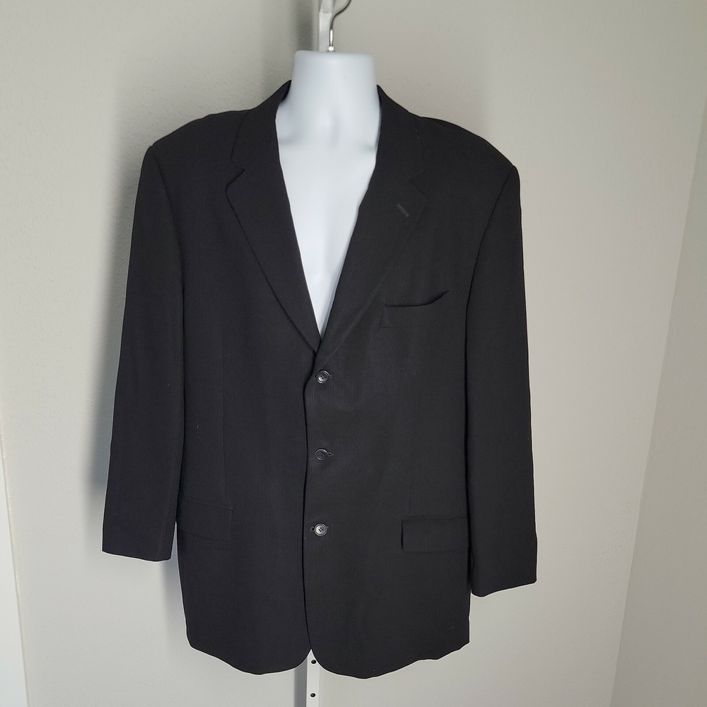 Calvin Klein Classy 3 Button Suit Jacket ~ Sz 44L ~ Black ~ Lined ~ 24" Arm Pit to Arm Pit ~ 21.5" Across Waist ~ 24.5" Sleeve Length ~ 34.5" Length Item is in great condition. Returns: If you decide you do not like the item or it does not fit I do accept returns within set amount of time. Payment: I do not require immediate payment, however please pay as soon as possible. Shipping: I do offer combined shipping. It is highest price plus $2 each additional item. Feedback: Feedback is automatically left after customer leaves me feedback. Condition: I try to be reserved when putting in the condition. Items are usually better than described unless it is vintage. Vintage may be a little more worn sometimes. If you have a question about condition, please ask. Also my home is smoke free and pet free. Thanks again for your interest in my item. I really do appreciate your business!