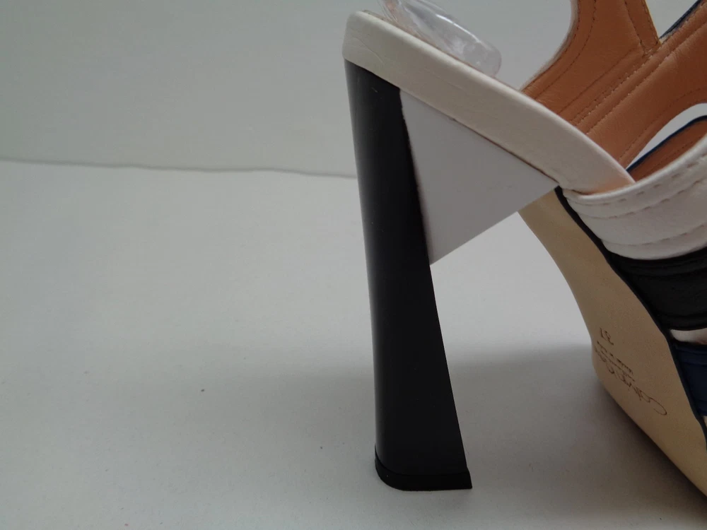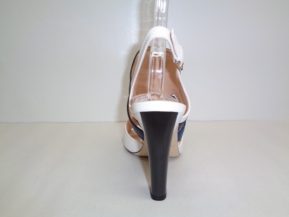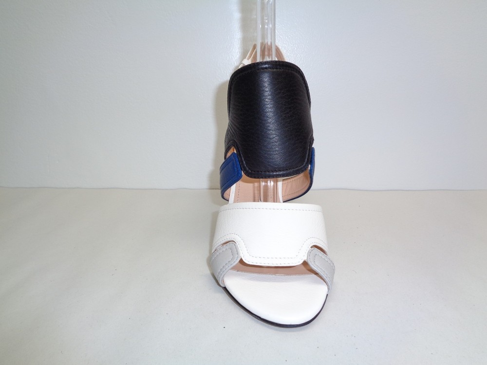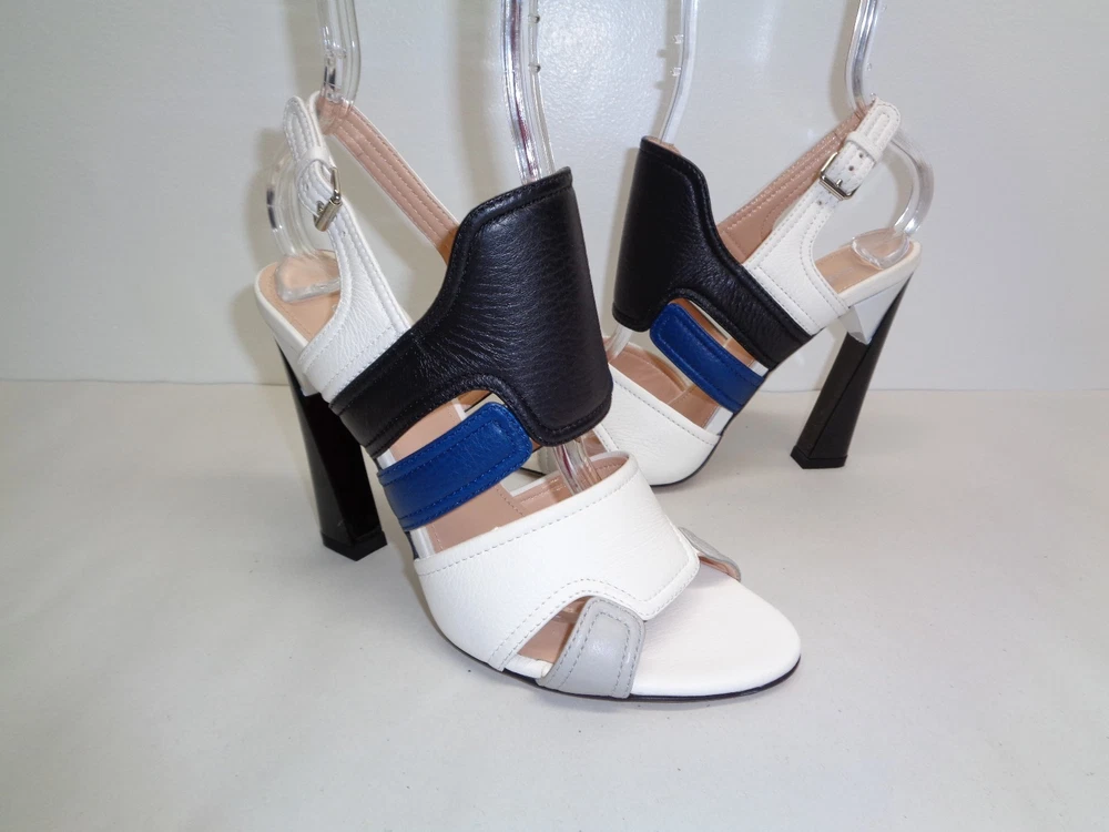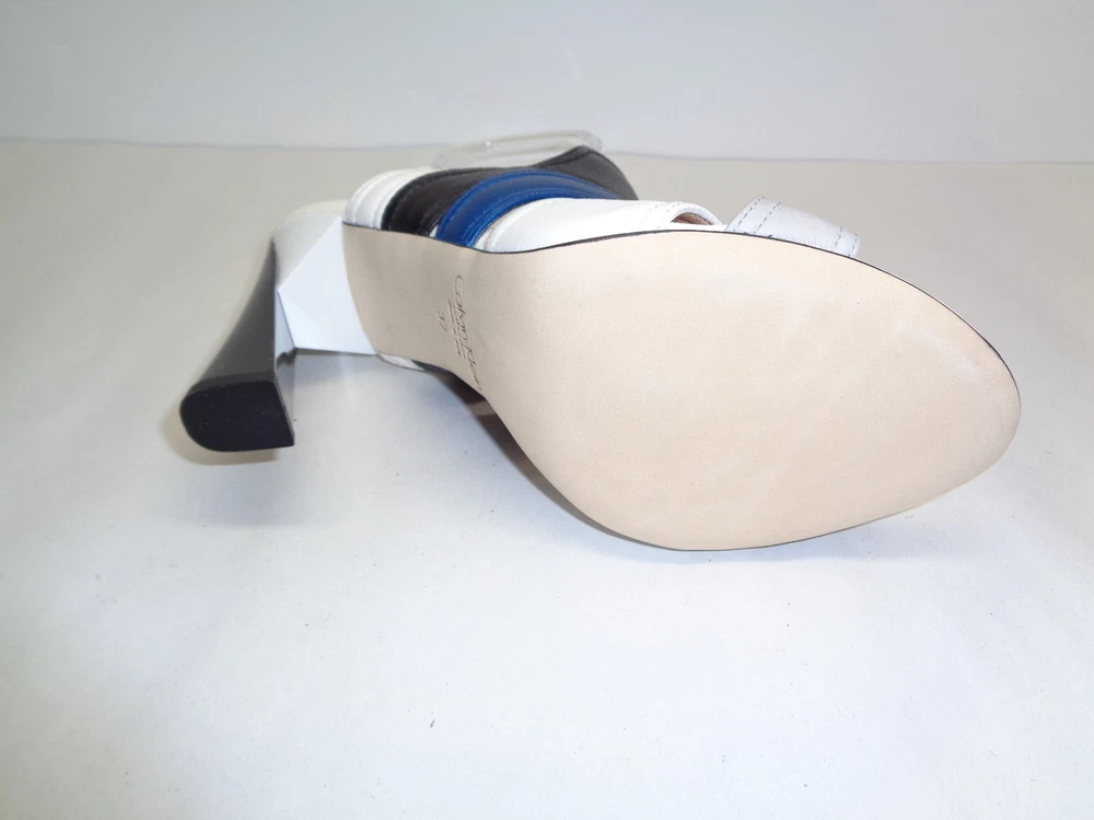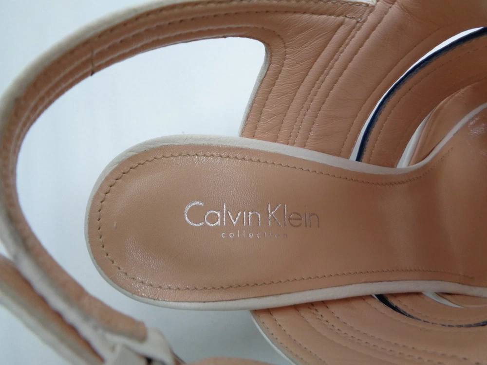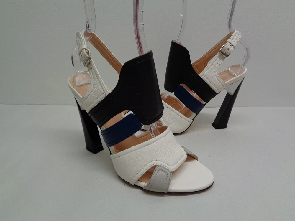 Calvin Klein Collection Size 7 M VERUSHKA White Leather Sandals New Womens Shoes -Style: VERUSHKA CERVO, J0002 -Color: White/Black/Angora -Leather upper, lining, and outsole -Buckle is silver color -Heel height approximately 4.5 inches -Eur 37 - There was no US size on these shoes. Converted to US size using a universal sizing chart.